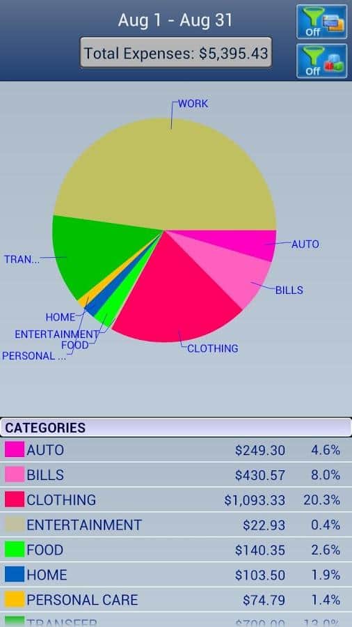 - Менеджер Бюджета: Вы можете создать организовать свой бюджет с любой комбинацией Групп и/или Категорий, Счетов и Подсчетов. Легко настраивается и удобно планируется любой бюджет. Гибкий для настройки под ваши нужды