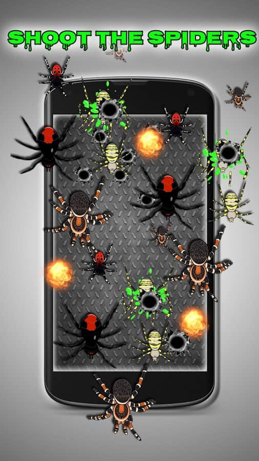 Spiders invasion – интересная игра на андроид, где вам предстоит противостоять нашествию пауков. Толпы пауков атакуют ваш телефон, и вы должны дать им отпор. Берите в руки оружие и уничтожайте одного паука за другим, не давая им расползтись дальше. Прилагайте всю свою ловкость и меткость для того чтобы уничтожить как можно больше пауков. За каждого уничтоженного паука вы будете получать очки, которые вы сможете потратить на покупку нового оружия и боеприпасов. В игре представлено несколько режимов игры и каждый из них имеет свой рейтинг. Уничтожайте толпы различных пауков и применяйте для этих целей несколько видов оружия.