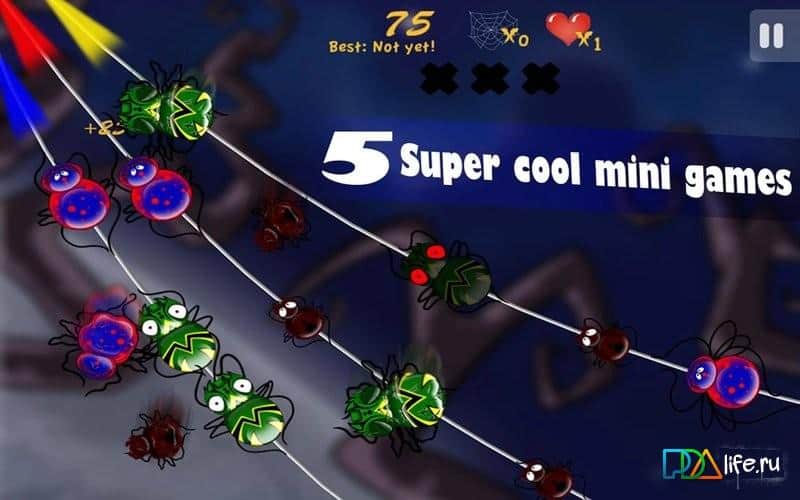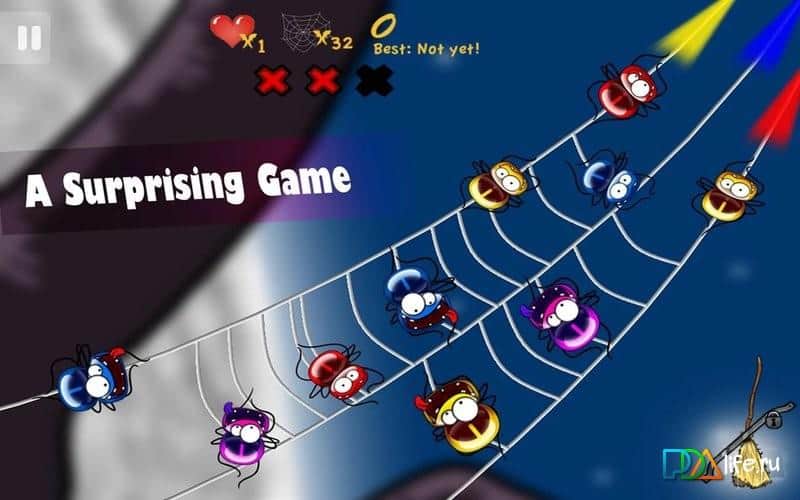SpiderWay - Замечательная головоломка на андроид, которая перенесет вас в мир паучков. На поле расположены три полосы паутины. Вам нужно провести паучков по этим паутинам. При том создать соединения между паутинами, чтобы паук отправился на линию своего цвета. Если к вам приближается паук другого цвета, вам нужно убрать его с опля. Игра в основном рассчитана на скорость и ловкость.