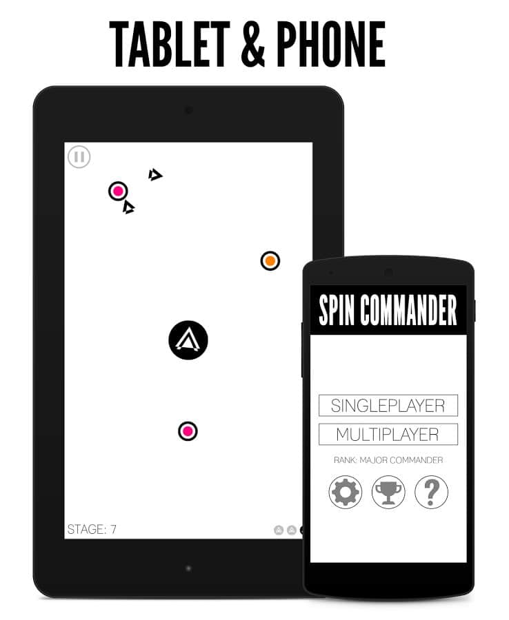 Spin Commander - аркада на андроид, которая потребует от вас полной концентрации и внимания. В этой игре на вашем экране покажется аватар, который необходимо перемещать по экрану поворачивая свой телефон. Проверьте свою реакцию в этой игре, поворачивая свой телефон так чтобы успевать отстреливаться от врагов и при этом защищать себя от них. Посмотрите, как долго вы сможете продержаться в одиночном режиме и испробуйте многопользовательский вместе со своими друзьями, управляя их аватаром у себя на телефоне, а они вашим. В этой игре вам предстоит пройти 10 этапов и побороться с мощными боссами, а также заполучить как можно больше достижений, очков и бонусов.