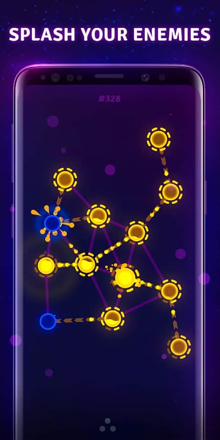 Splash Wars - glow strategy - Развивайте свои юниты для их размножения по свободной территории, которая находится внутри космического пространства! Наполните все клетки водой на больше 300 уровнях, чтобы получалось свечение одного цвета. Если же некоторые клетки будут совершенно других цветов, вам необходимо как можно быстрее отрезать их, так как это вражеские клетки снабжения. На каждом уровне будет до 5 противников, на всех из них необходимо захватить клетки, нарисовав специальную линию из доступной ячейки для передачи капли в следующую ячейку.