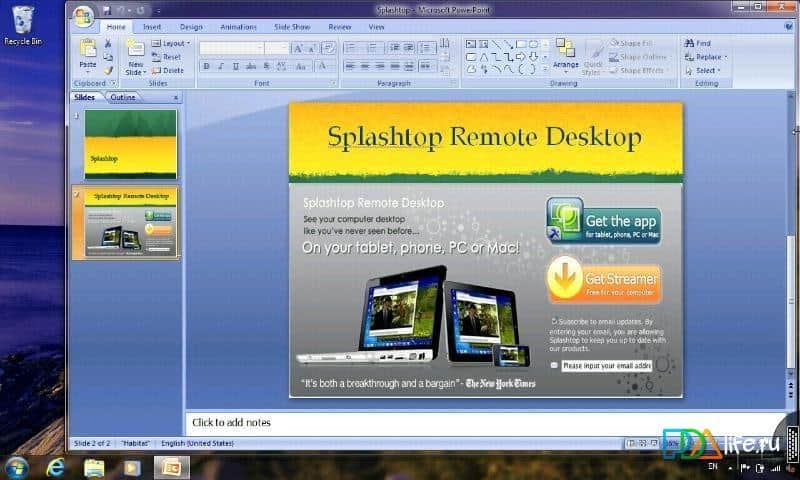 Splashtop Remote Desktop – первоклассная программа удалённое управление рабочим столом для андроид. Особенность этой программы в том, что она обеспечивает очень высокую скорость передачи данных, позволяющая управлять PC практически в реальном времени, вплоть до управления игр и просмотра видеоконтента. Splashtop Remote Desktop для андроид не требует лишних слов, вместо них поражает его работа.