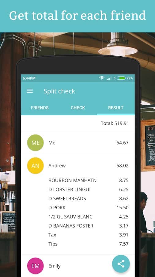 Если вы являетесь частым посетителем ресторанов, кафе, магазинов, супермаркетов, а также любите путешествовать в другие страны целой компанией, то программа Splity станет вашим надёжным помощником и всего за одно мгновение поделит чек или чаевые без использования калькулятора на 75 различных языках. Для этого нужно всего лишь сделать фотографию выданного вам чека, "раскидать" своими друзьями, получить быстрый и точный результат. Это удобное приложение также поможет и с расчетом чаевых в зависимости от каждого сделанного вашим другом заказа без лишних усилий, в одно нажатие.