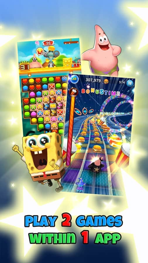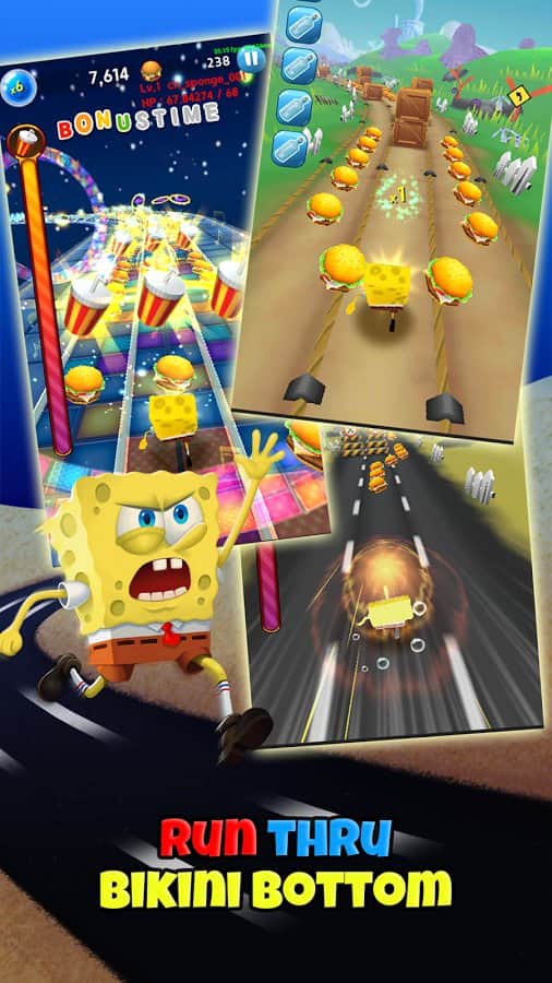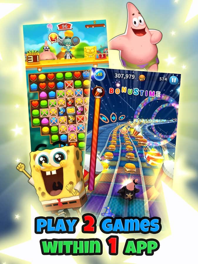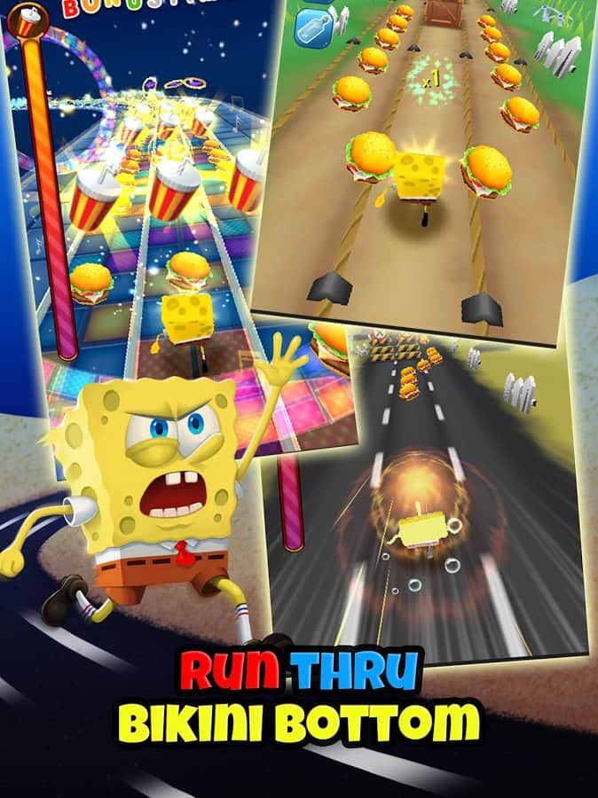 SpongeBob Game Station – раннер на андроид, где вы будете управлять известными героями популярного мультсериала. Возьмите под свой контроль Спанч Боба и проведите его по всем уровням игры, бегая в известных местах, таких как Бикини-Боттом. Управляйте бегом героя и перемещайте его в разные стороны, чтобы собирать все монетки и бонусы у себя на пути. Также будьте предельно внимательны и осторожны, чтобы не попасть в ловушки и обойти все преграды. Нажимайте в нужный момент на экран своего телефона или планшета и заставляйте героя совершать прыжки и проделывать невероятные трюки. Откройте для себя милых питомцев и приручите их.