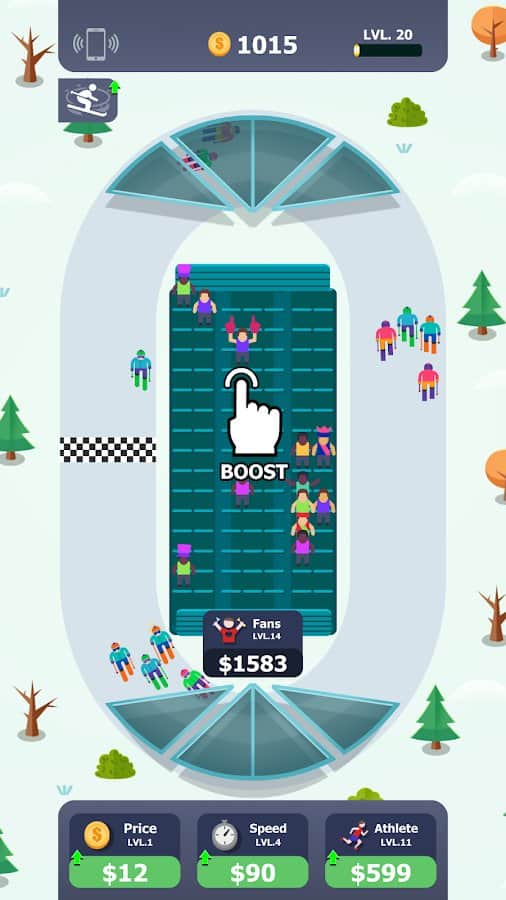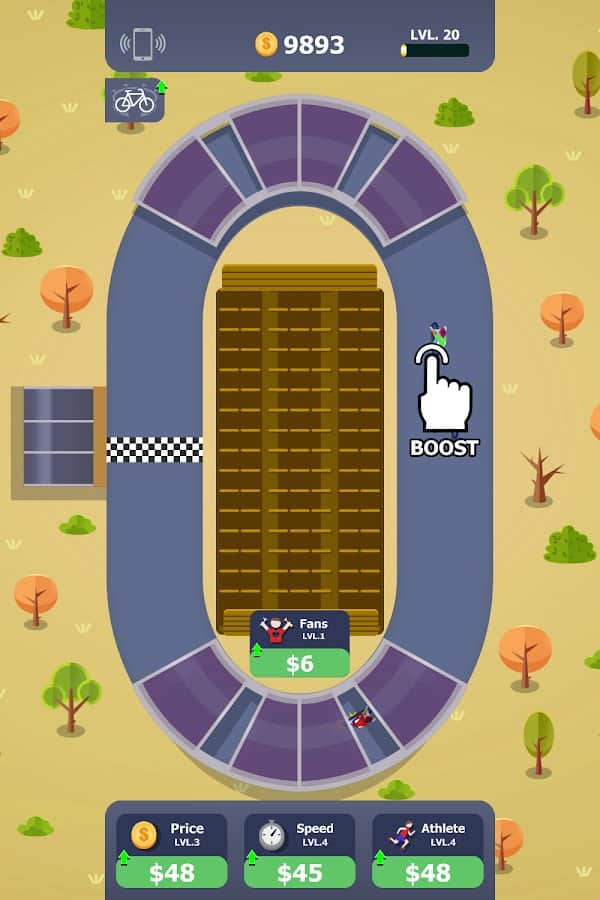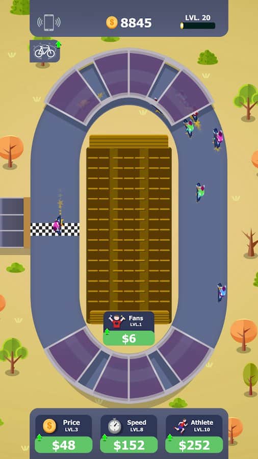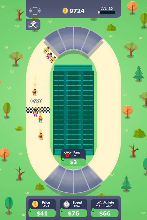 Sports City Idle – увлекательная игра на андроид, которая перенесет вас в спортивный город. В этой игре вы окажитесь в городе заполненном многочисленными стадионами по которым каждую минуту проводятся различные состязания. Касайтесь экрана своего телефона или планшета и заставляйте спортсменов бегать по стадиону. Наблюдайте за атлетами, бегунами и велогонщиками и добивайтесь от них хороших результатов. Устанавливайте свои рекорды в игре и открывайте новые стадионы и получайте ценные призы и награды.