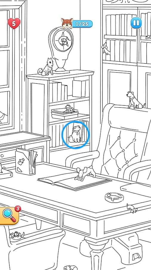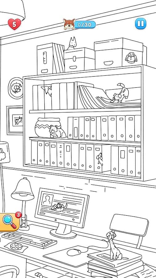 Spot The Dog: Hidden Object - Погрузитесь в мир увлекательных приключений, исследуя уникальные сцены, оформленные в стиле книжек-раскрасок! В каждой сцене спрятались милые щенки, которые только и ждут, чтобы вы их нашли. Тренируйте своё внимание, исследуя разнообразные локации — от уютных домов до шумных парков. С каждым новым уровнем вы будете находить игривых собак, умело замаскированных в деталях окружающего мира. Делайте каждый уровень особенным, раскрашивая его своими находками! Собирайте звёзды и открывайте редких пород собак для своей виртуальной коллекции!