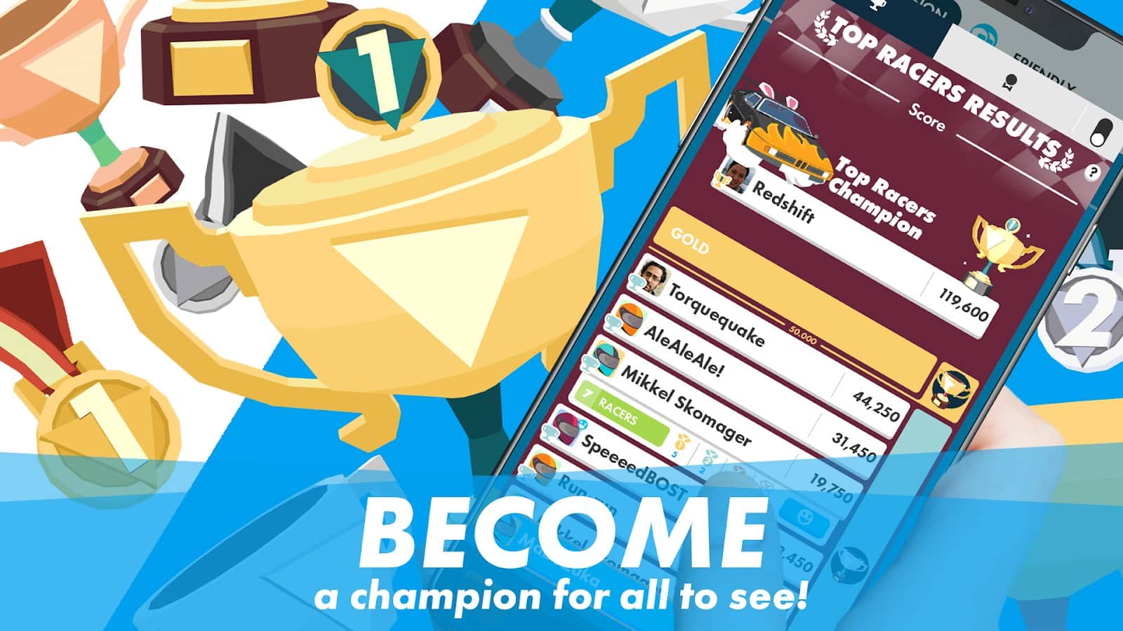 Суть заключается в соревновании между противниками. Выбирай машину из гаража и стартуем. У нас есть только кнопка газа. Нажимаем на газ, и наша машина начинает набирать обороты, перед поворотом мы отпускаем газ, чтобы она заходила в повороты.