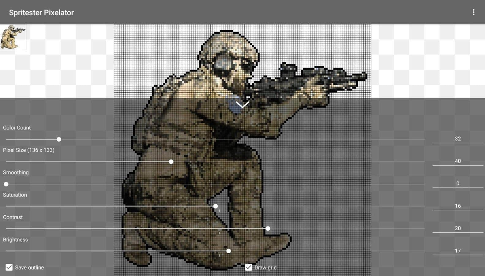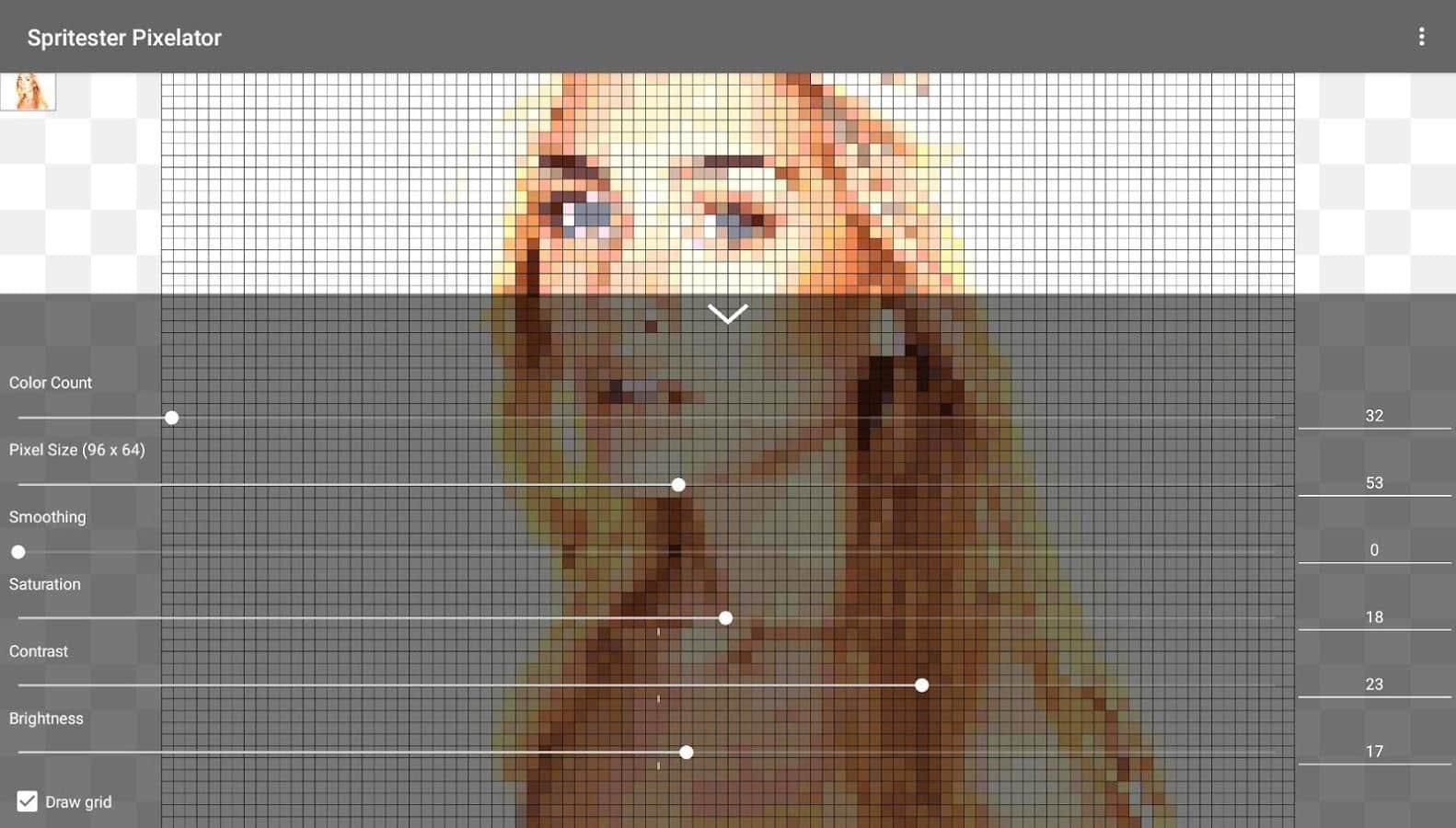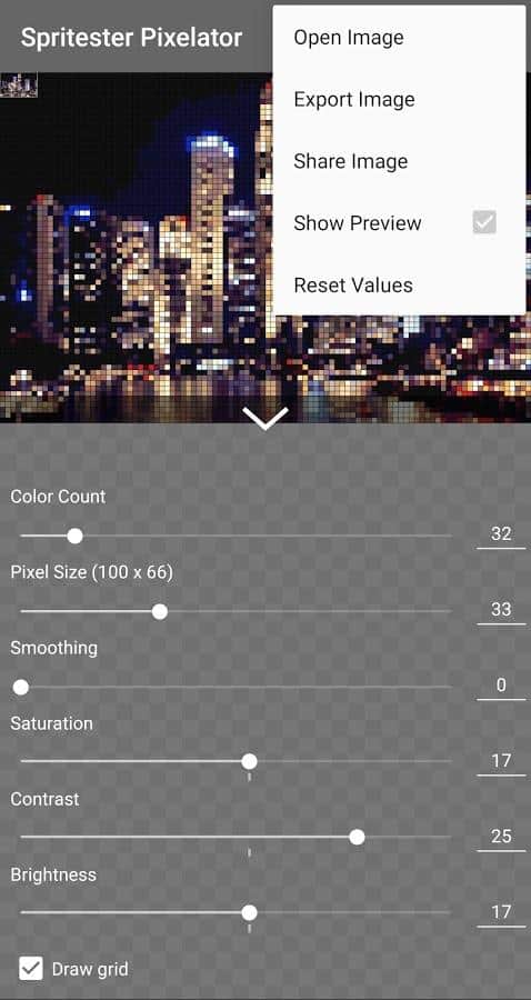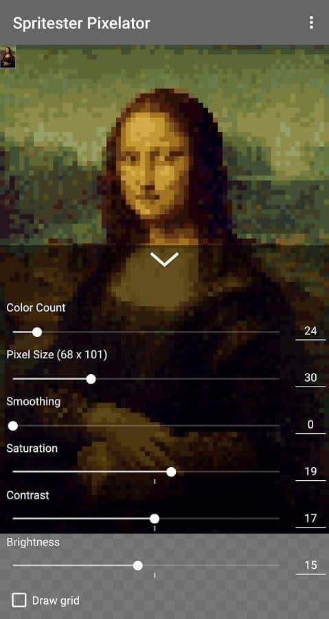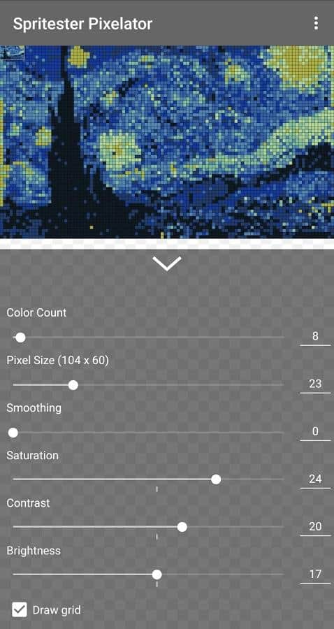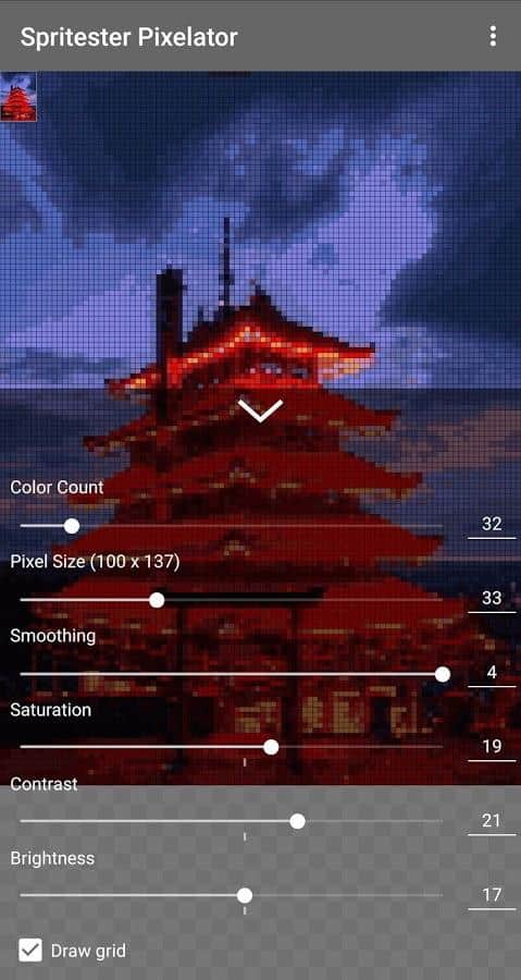 С помощью Spritester Pixelator: Pixel Art Generator PRO вам удасться познать целый мир пиксельной графики, применять уникальные эффекты и создавать образы в этом стиле.