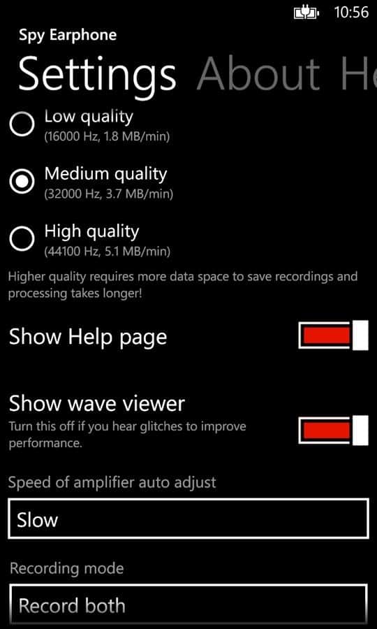 Spy Earphone - отличная программа на windows phone, которая может превратить ваш смартфон в шпионский микрофон. Просто подключите ваши наушники в гнездо и начните шпионаж путем усиления звука до 1000 раз!