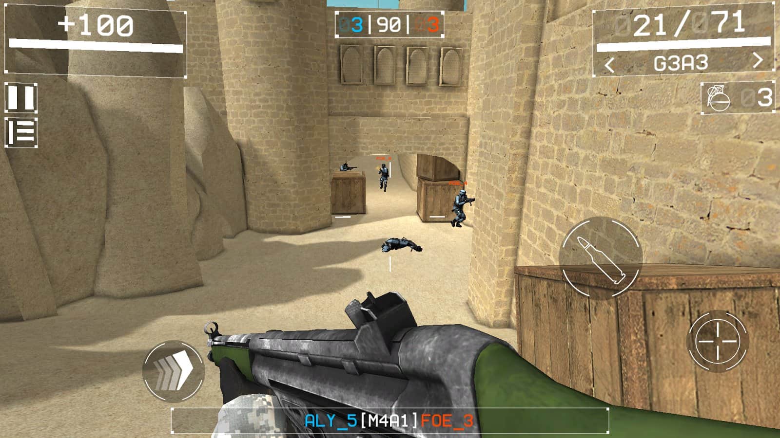 Squad Strike 3 : FPS – шутер от первого лица на андроид, где вы возьмете в руки оружие и будете отстреливаться от врагов. Перемещайтесь по разнообразной местности и ведите прицельный огонь по врагам, уничтожая одну цель за другой. Разрабатывайте свою тактику ведения боя, ища укрытие и ведя огонь из снайперской винтовки или передвигаясь по открытой местности и стреляя на поражение. Применяйте в бою разнообразное оружие, в том числе гранаты и мины. Исследуйте разнообразные карты игры и улучшайте свое оружие, а также открывая новое. Вступайте в бой против компьютерных врагов или играйте с реальными игроками со всего мира. В игре представлено 10 уровней, 2 режима игры и 10 видов оружия.
