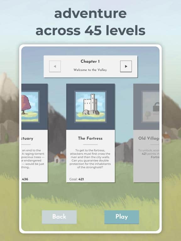 Square Valley - Потребности местных жителей всегда разные, но сейчас им необходимы новые территории для создания специальных для жизни зданий, получения полезных ресурсов и прочих возможностей для использования. В качестве Духа долины вам поручено помочь горожанам, но ваши способности ограничены, поэтому придется постараться над каждым раундом, чтобы разместить как можно больше плиток. С каждым уровнем, а их более 45 во всех главах, появляются сложные препятствия, мешающие вам улучшить жизнь окружающих и выполнить их просьбы.