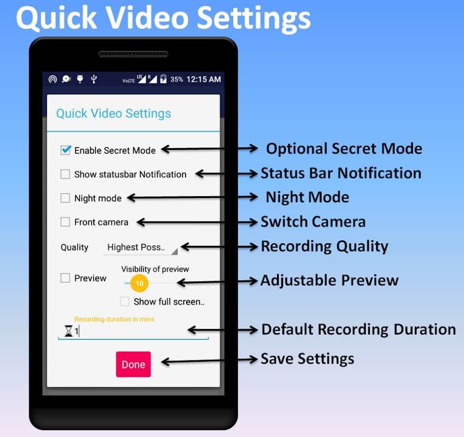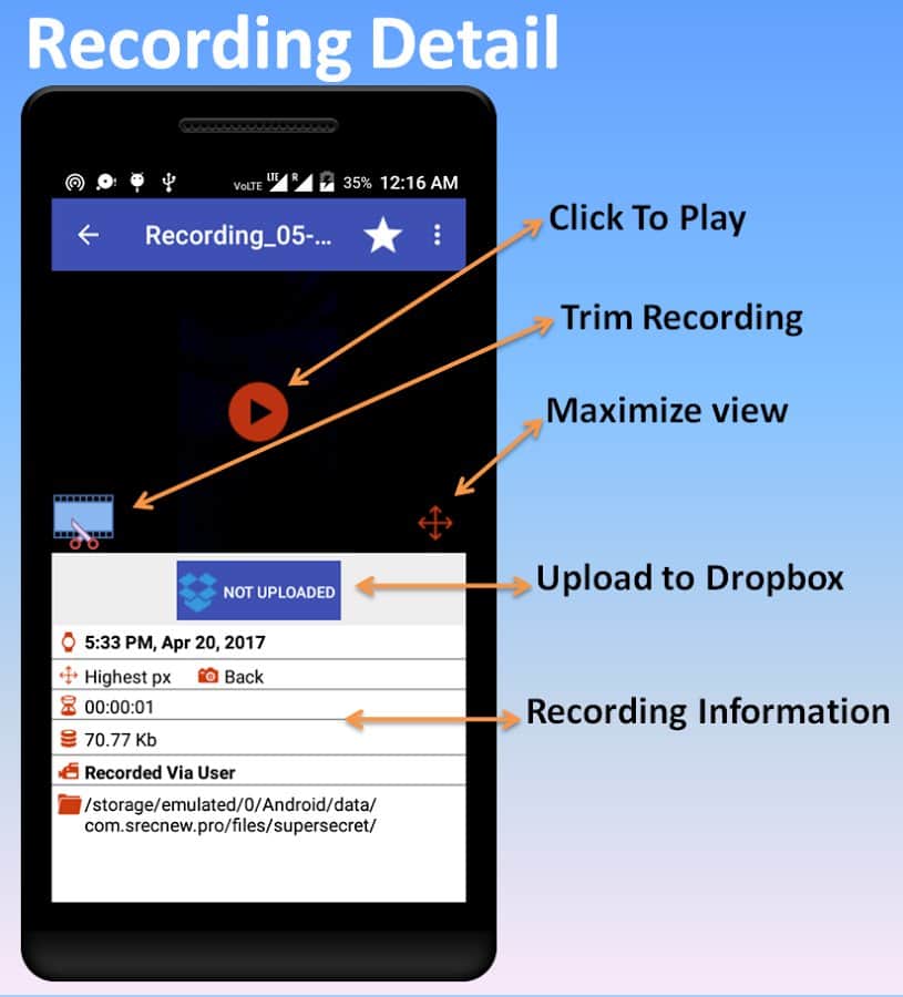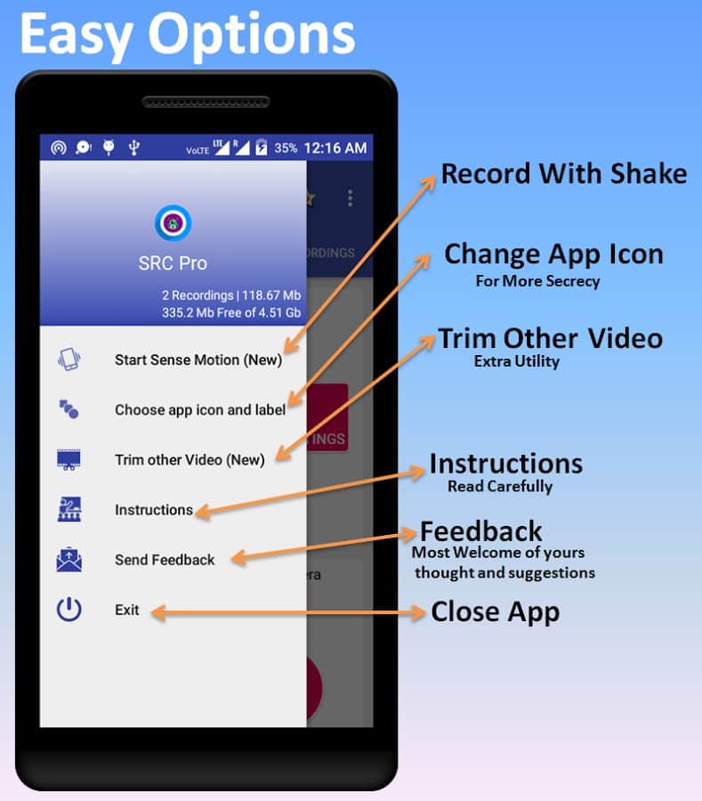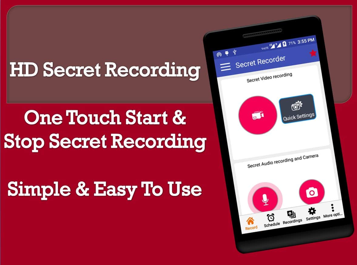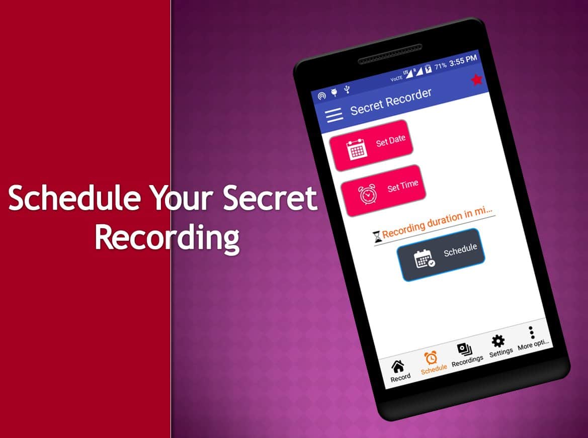 SRC Pro - это приложение поможет вам если вдруг понадобилось записать видео или аудио при этом не выдать себя. Весь его функционал настроен на секретность и качество, вы даже сможете задавать даты в график когда съемка будет включаться и отключатся автоматически. К тому же что бы скрыть присутствие этого приложения у вас на смартфоне, можно просто выбрать одну из предложенных иконок и стартовать запись по ней.