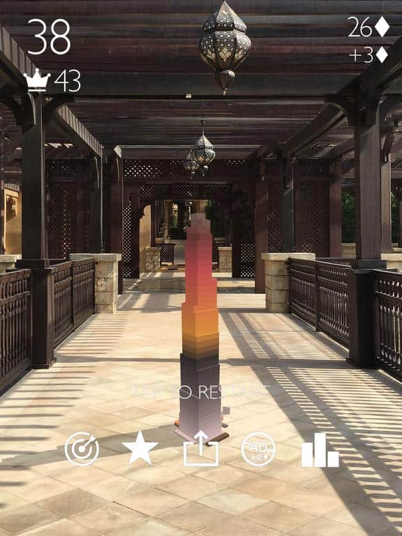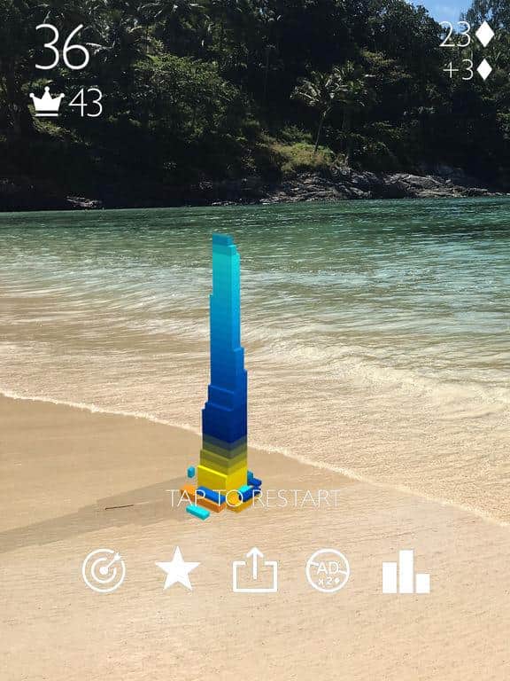 Stack AR - эта игра может показаться вам довольно скучной, однако при помощи новеньких возможностей iOS, вам предстоит строить башню не просто у себя в смартфоне а прямо на любой поверхности. Суть игры довольно проста и банальна, вам нужно скидывать блоки один за другим и делать это как можно точнее, ведь если ваша башня начнет коситься в бок то в итоге упадет, и значит вы проиграли.
