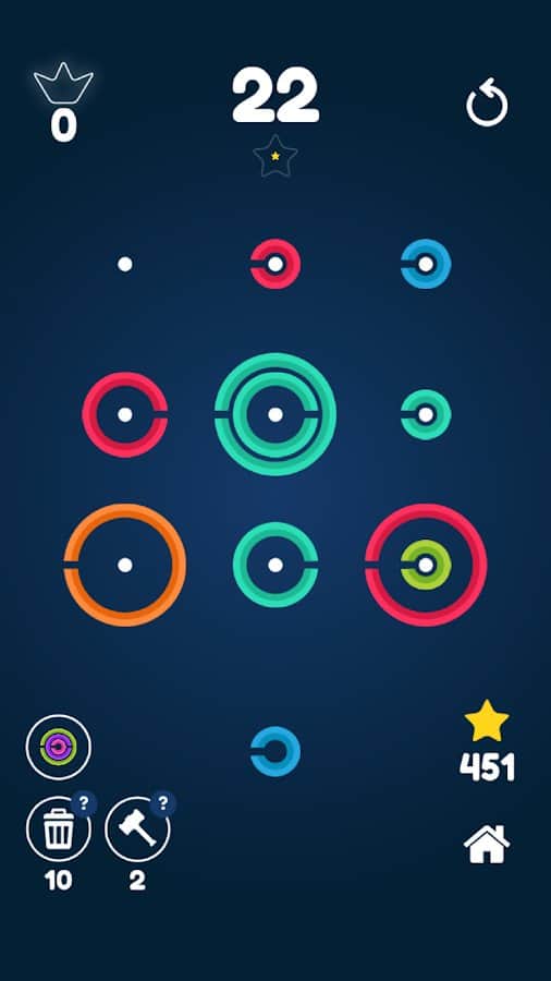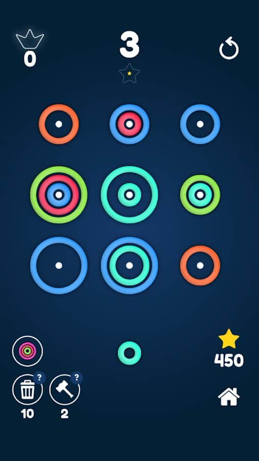 Stackz - Put the Rings on: Color Puzzle – оригинальная игра на андроид, где вы будете располагать кольца разного диаметра на игровом поле. Вашей задачей будет располагать кольца так чтобы сформировать из них ряды по горизонтали, вертикали и диагонали и убрать их, освобождая место для других. Развивайте свою наблюдательность и сообразительность и расставляйте кольца в нужных местах. Получайте отличные награды за пройденные уровни и продержитесь в этой игре как можно дольше. Игра порадует игроков приятной графикой и простым управлением. Играйте с друзьями и поднимайтесь как можно выше в таблице лидеров.