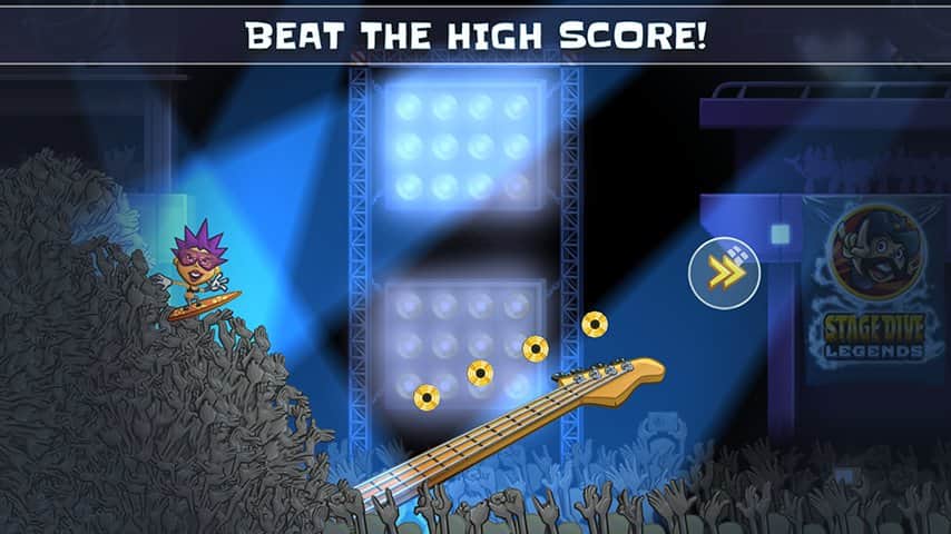 Stage Dive Legends - Отправьтесь в великолепное турне по красивейшим местам всего мира. Будете ли вы в Нью-Йорке, Лондоне, Берлине или Париже - везде вы найдете, где можно будет провести свой рок- концерт. Присоединитесь к веселью в этой эпохальной саге про рок-звезду и стань свидетелем самого легендарного события в каждом рок-концерте: прыжке со сцены. Разбей свою гитару, разгонись и прыгни в присутствующую толпу. Устрой серфинг по концертному залу и почувствуй любовь твоих поклонников. Выполняй сумасшедшие трюки, собирай золотые моменты и развесели собравшую на праздник толпу! Избегай летающих препятствий, таких как бананы, недоеденные бургеры. Stage Dive Legends- это супер =быстрая игра-раннер, которая дарит море радости и веселья. Не забудь улучшить свою любимую рок - звезду и побей все имеющие победы. Стань настоящей легендой прыжков со сцены!