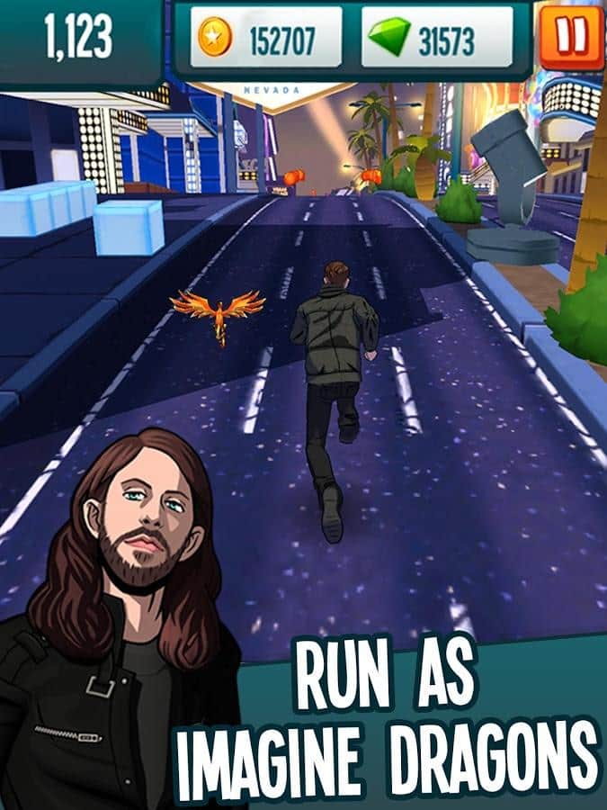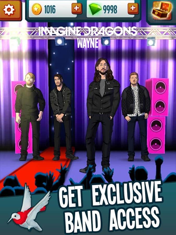 Stage Rush - Imagine Dragons – раннер на андроид, где вы будете играть за каждого члена популярной группы Imagine Dragons. Эта игра была создана для того чтобы помочь больным раком людям. Устанавливайте эту игру и бегайте по улицам огромных городов, таких как Лас-Вегас и Париж под узнаваемые хиты этих исполнителей. В этой игре для вас появиться возможность узнать много нового и интересного об этой группе, увидеть новые фотографии с их изображением и задать вопрос. Игра порадует вас оригинальными уровнями с экстремальными препятствиями и возможностью одеть своего героя в разнообразные костюмы и дополнить его образ аксессуарами. По пути собирайте специальные письма и открывайте бонусные уровни.