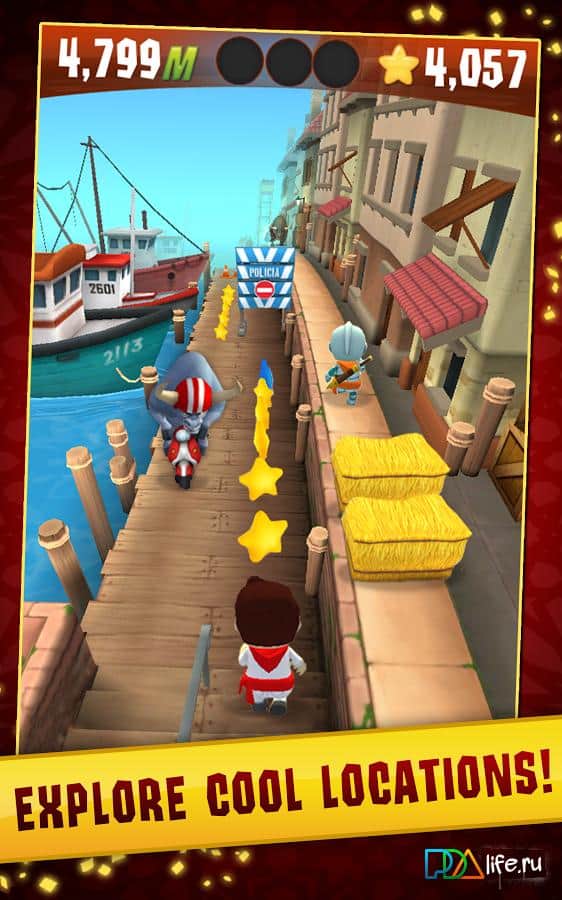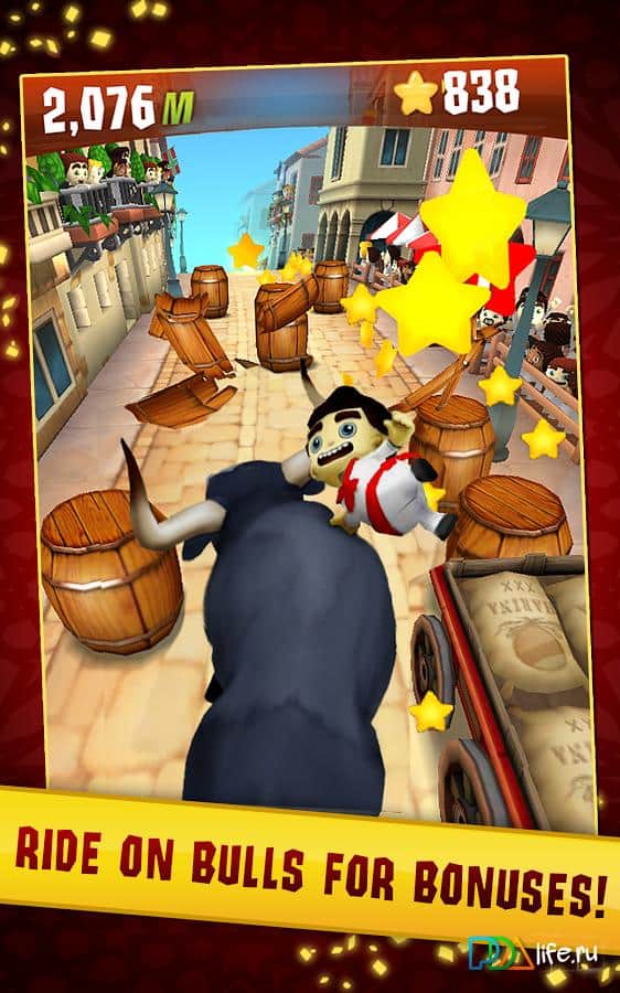 Stampede Run - игра на аndroid, в которой вы попадете в Испанию на карнавал быков. Вам предстоит убегать от разъяренных быков при этом преодолевать различные препятствия. На ваш выбор будет сотни сложных трасс на различных улицах Памплоны.