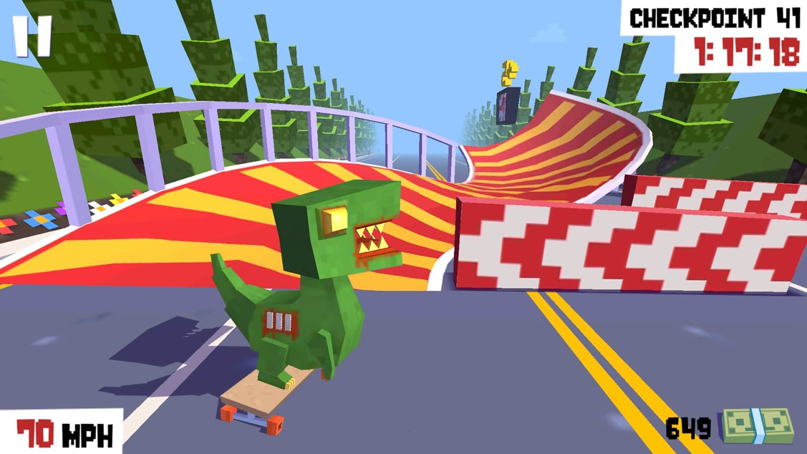 Star Skater – раннер на андроид, где вам предстоит взять под свой контроль скейтбордиста. Управляйте героем, который едет на своем скейте по городским улицам и скоростным шоссе. Продемонстрируйте все свои навыки хорошей езды, перемещая героя из стороны в сторону, избегая столкновения с различными препятствиями. Выполняйте разнообразные трюки и добейтесь звания лучшего скейтбордиста в городе. Ставьте рекорды по прохождению трассы и получайте ценные награды. Каждый раз проходя удачно трассу, вы будете открывать для себя новых смешных персонажей таких как: панда, робот и многих других.