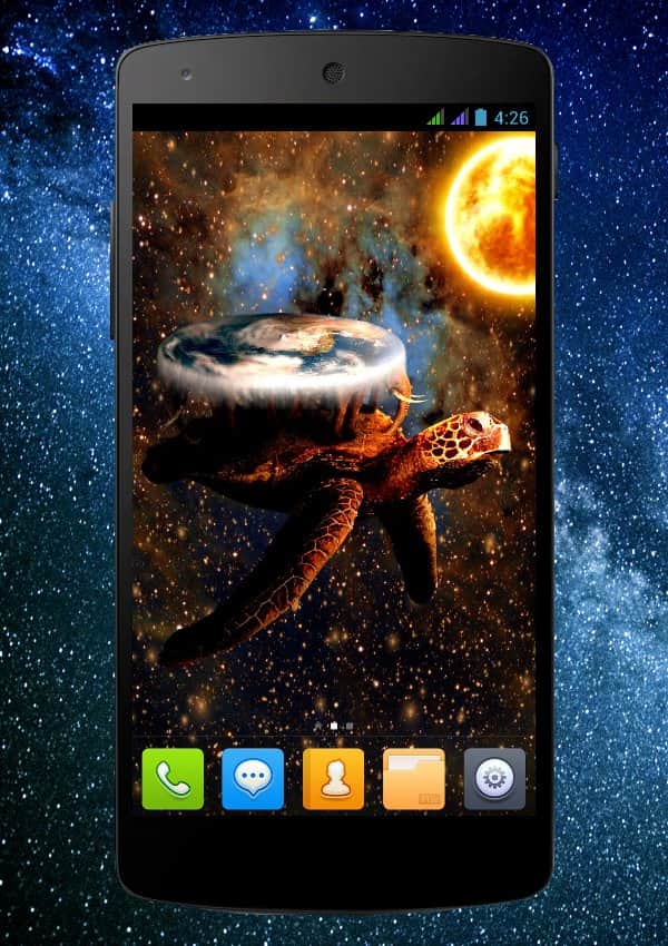 Star Turtle Pro Live Wallpaper – ещё давно английский писатель Терри Пратчетт писал о интересной планете в виде большого диска, который стоит на огромной черепахе. В этом мире всё совершенно по другому, законы физики отличаются от земных, а магия более чем материальна. Черепаха медленно плывёт бороздя космические просторы и неся свою ношу.