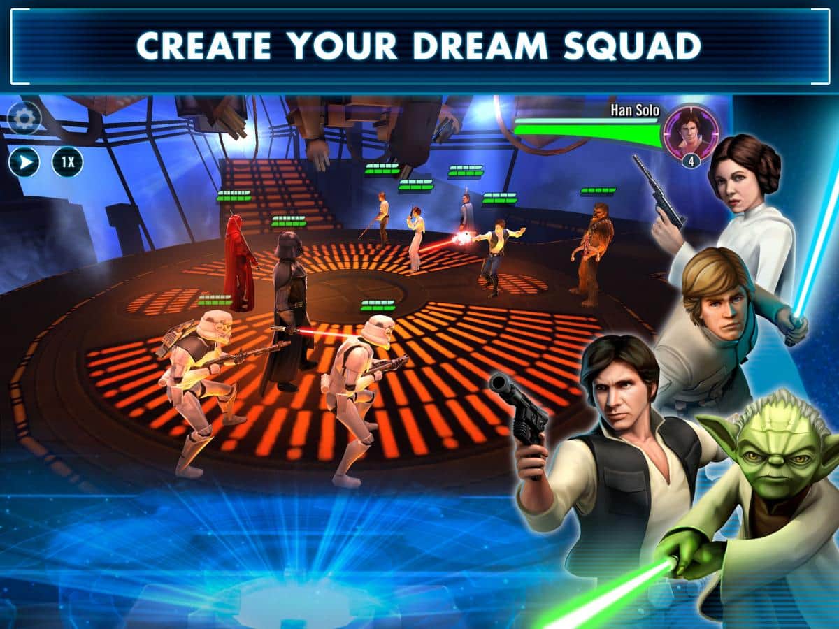 Star Wars: Galaxy of Heroes / Звёздные войны: Галактика героев - В этой игре вы можете сами принять участие в эпической битве добра и зла в мире Star Wars. В самом начале игры вы сможете принять любой из сторону войны, побывать на известных полях битвы, повидаться с известными героями и построить все военные машины.