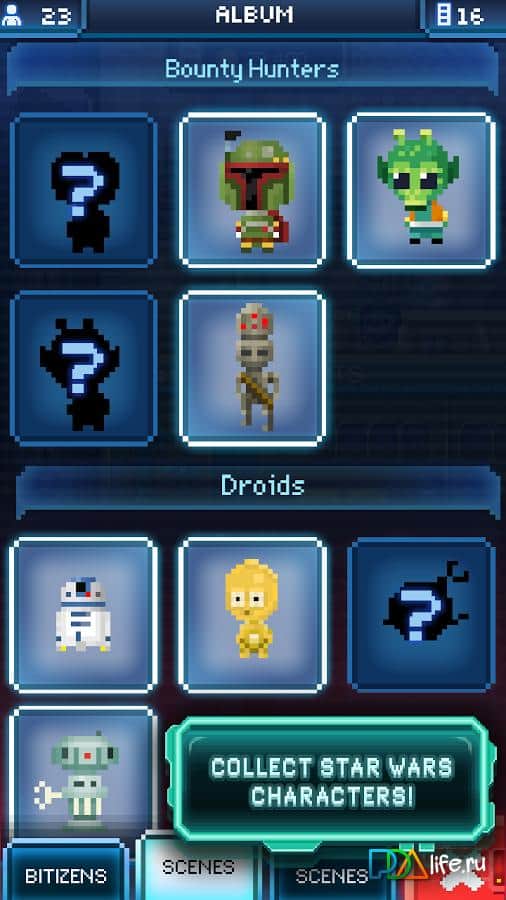 Игра предлагает вам обустроить свою космическую станцию из звёздных воинов. На этой станции будут появляться как случайные персонажи, так и главные герои серии SW. Игра спокойно проходится без доната (хотя есть и кнопка vip), но самое главное: играется без интернета. Из общих минусов могу лишь выделить следующие: