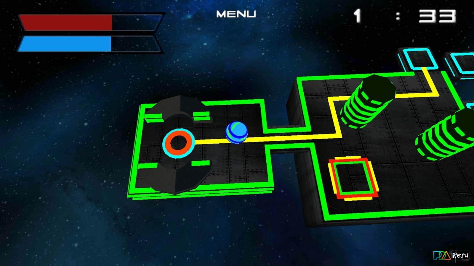 StarBall - вам предстоит путешествовать по невероятным космическим уровням, в которых полно опасных ловушек и препятствий, которые будут мешать достичь цели. Вам необходимо собрать на уровне 3 шара, которые разбросаны в разных уголках этапа и после этого добраться до финиша, при этом не упав в пропасть и не попасться в коварные ловушки. В игре много различных уровней, следующий не похож на предыдущий, поэтому игра некогда не наскучит и подарит вам отличное настроение.