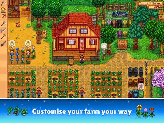 Stardew Valley – увлекательная фермерская игра теперь и для IOS устройств. В этой игре вы будете выступать в роли фермера и выполнять различные миссии и задания по посадке и выращиванию растений, разведению животных, исследованию темных шахт, ловле рыбы и других заданий. Управляйте своей небольшой фермой и приведите ее к процветанию и расширению. Постройте уютный дом и заведите семью. Общайтесь со своими соседями и выполняйте их поручения и получайте за это награды. Старайтесь не выходить по ночам из своего дома ведь по округе ходит чудовище.
