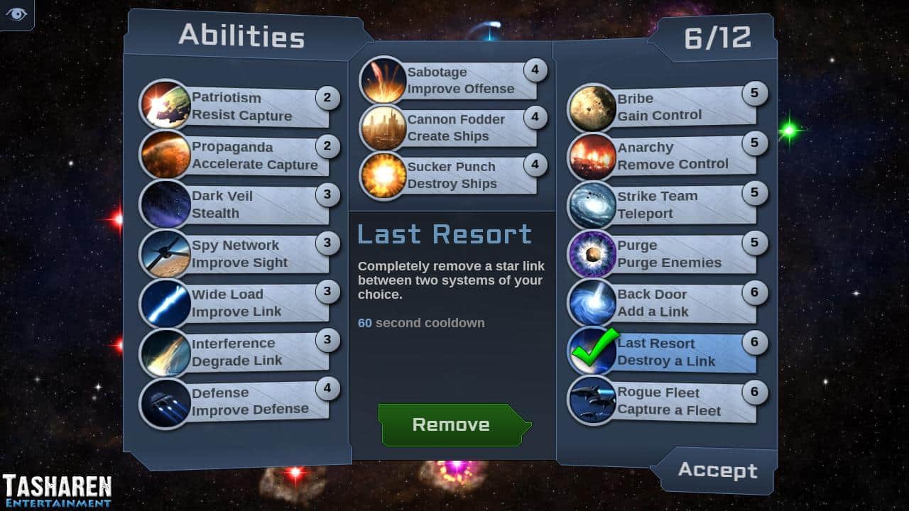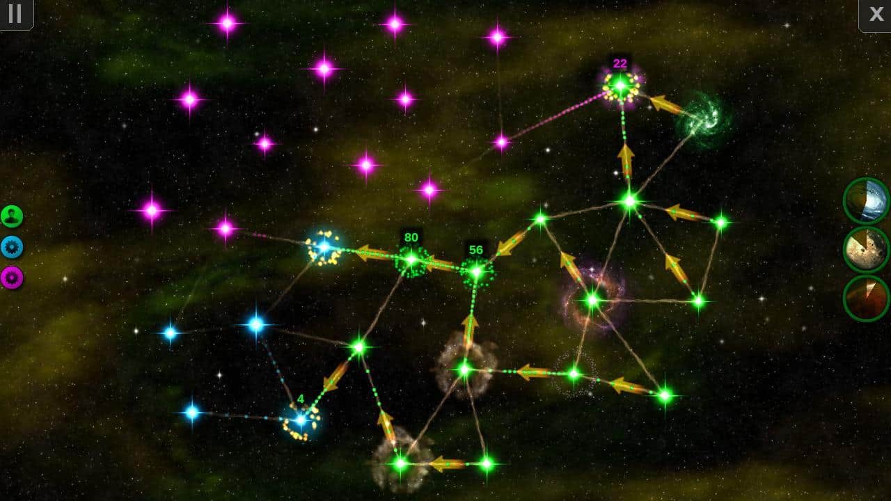 Starlink - Это стратегия в реальном времени, где вам предстоит захватить всю вселенную. Хватит воевать за куски на земле, захватывайте сразу целые галактики. Суть игры очень проста, в каждой из ваших галактик создаются воины, которые перемещаются по цепочкам, которыми соединены галактики. Чем больше их у вас, тем больше воинов вы получите. Вы можете выстроить цепочку таким образом, что бы все ваши воины двигались в одну точку. Однако, все не так просто, ведь в игре есть супер способности. К примеру ваш враг, может отправить капсулу со своими солдатами в тыл, и там перебить поставку ваших воинов на фронт, таким образом захватить ближайшие галактики.