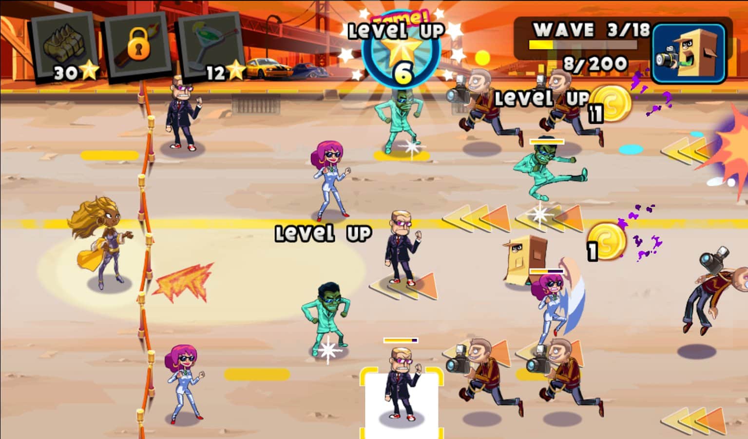 Плохая игра. Во первых, сама идея тупорыла. Зачем звездам воевать с папарации? Те же им славу добывают фактически и кормят, этих самых звезд:-) Поэтому идея абсурдна уже. Геймплей как в ПвЗ. Хорошо, неплохой выбор, но они че то перемудрили там. Защитники становятся нападающими и наоборот. Тудно уследить за всем этим. Сбивает с толку. Плюс ко всему этому музыка просто поносно-раздражающа. И все заточенно под донат. Ак что извините, не советую в нее играть.