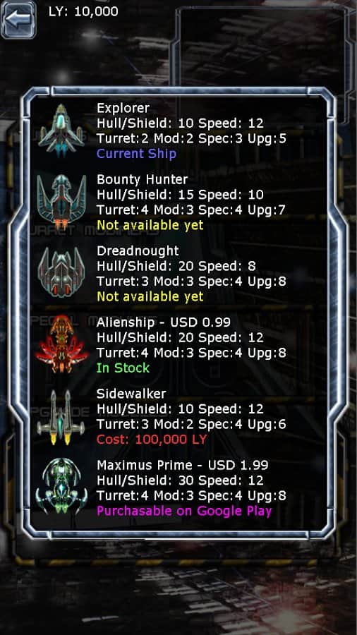 апгрейдить можно как корабли, так и оружие, а также броню
