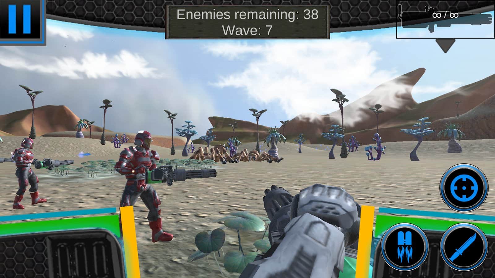 Хреначим волны из гигантских инопланетных (и не только) жучар из плюсов: средняя графика, которая не режет глаз, удобное управление, звуки довольно качественные, адекватные цены в магазине