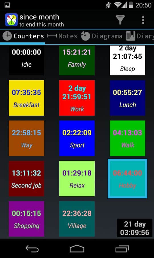Статистика времени - отличное приложение на андроид для тех, кто ценит время! Вы сможете легко подсчитать сколько времени вы тратите на то или иное действие, составить списки и диаграммы событий, установить оповещение при определенных событиях и многое другое: