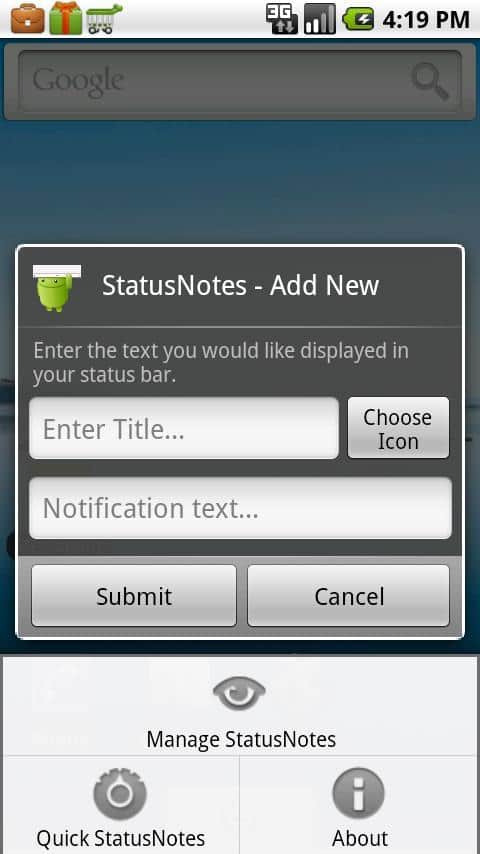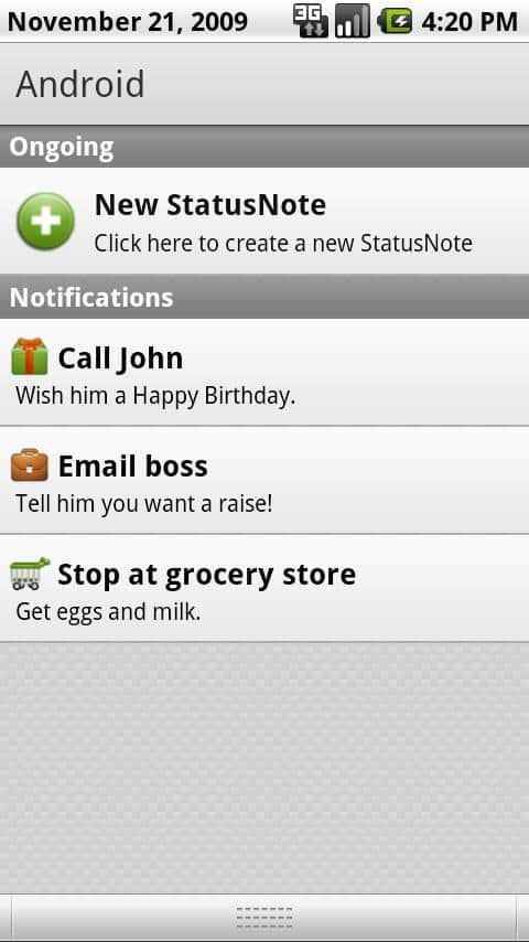 StatusNotes (Status Notes) - быстрые заметки и напоминания в строке состояния во время использования любого приложения для android. Вас порадуют оригинальные уведомления заметок / статус заметок в строке состояния. А так же создание неограниченного колличества уведомлений с более чем 70 иконками высокого качества!