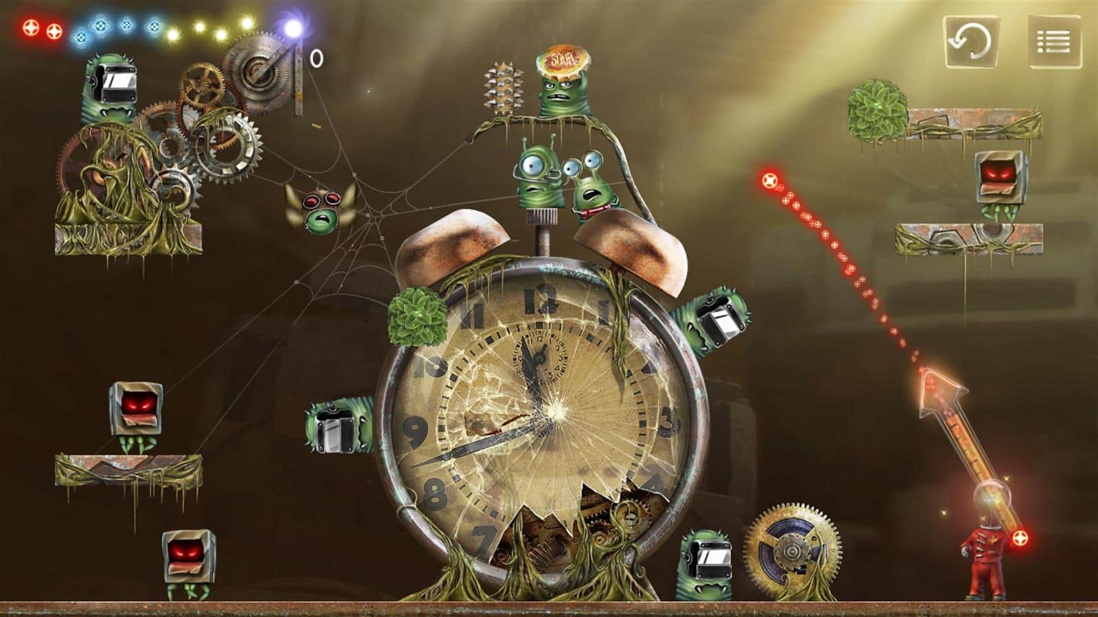 Stay Alight – помогите забавному человеку-лампочке уничтожить всех зеленых монстров и спасти мир. В этой игре вы попадете в удивительный микромир, который захватили злые монстры, вашей задачей будет дать им отпор. Цельтесь и стреляйте лапочками во врагов, уничтожая их всех. Выбирайте нужную траекторию полета лампочек, чтобы одним ударом уничтожить как можно больше монстров. Помимо лампочек вам в помощь придет заморозка и землетрясение, что поможет вам в нелегкие моменты достать врага. Пройдите более 60 уровней и уничтожьте всех монстров, очищая планету от них. Играйте и наслаждайтесь игрой.