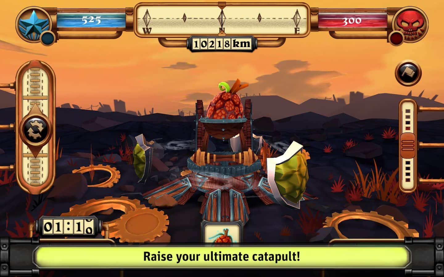 Steampumpkins - оригинальная экшен аркада с элементами стратегии. События игры разворачиваются в некой альтернативной вселенной, в мире царит хаос и все государства стараются покорить получить контроль над остальными, при этом стоит отметить что используются довольно необычные средства, а именно тыквы. И так, игровая механика строится по следующему принципу, выбрав себе очередную жертву, США, Японию, не важно вам все дозволено, на глобальной карте вам необходимо определить цель, например крупный город, и затем по средствам катапульты отправить в заданное место континентальную баллистическую тыкву. Уничтожая город за городом вы получите контроль над все страной, а на захваченные ресурсы вы сможете улучшить катапульту или же увеличить свою огневую мощь.
