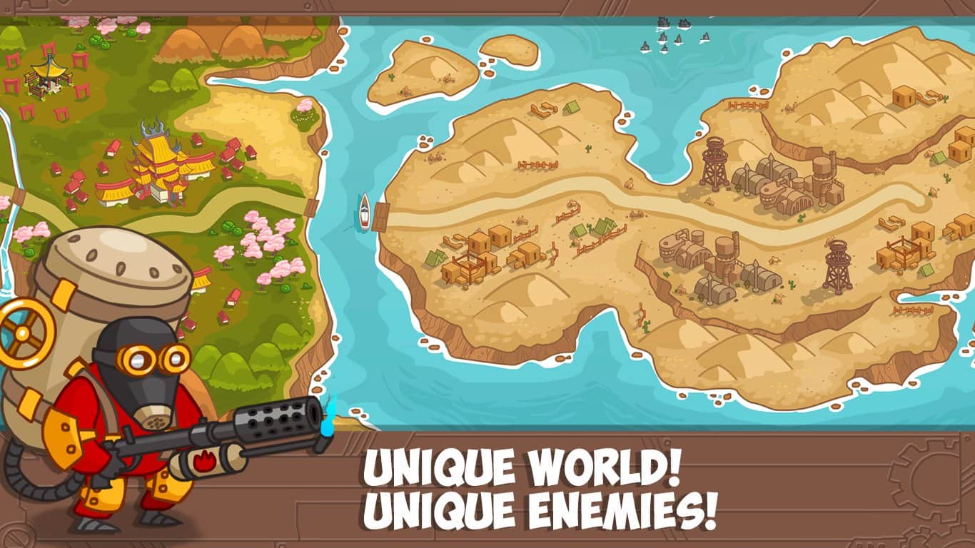 Как не трудно догадаться из названия игры Steampunk Defense Premium это тактическая стратегия из серии обороны башен, выполненная в стилистике стимпанк. Сюжетная линия игры предельно проста, на вашу территорию напали злобные и коварные захватчики и вы вынуждены отражать волны нападающих. Игровой процесс так же более ориентирован на аркаду, нежели на серьезную стратегию. При этом разработчики реализовали неплохую графику, массу различных локаций, а дело происходит в жарких уголках нашей планеты, так что сражаться вам предстоит в джунглях и пустынях, богатый выбор юнитов, как с вашей стороны, так и с вражеской, несколько игровых режимов в том числе мильтиплеер. Другими словами перед нами Tower Defense выполненный в развлекательном стиле.