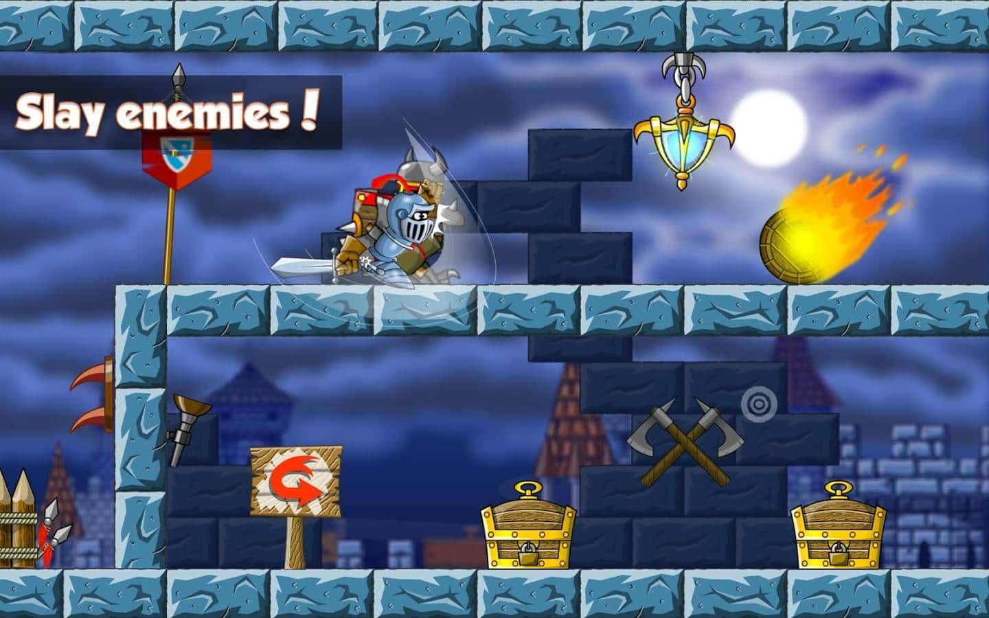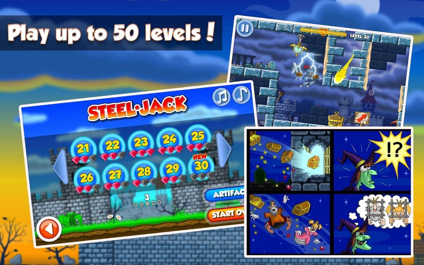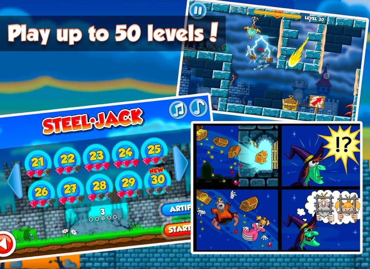 Steel Jack - платформер в котором вам предстоит привести рыцаря Джека к славе. Он путешествует по средневековому замку на своем верном коне и с помощью своего меча убивает врагов и собирает драгоценности. Вас ждут разнообразные враги, которые будут попадаться у вас на пути, множество бонусов и наград, а также лакомство для вашего верного друга коня. Начните свое путешествие прямо сейчас и побейте все рекорды в прохождении этой игры.
