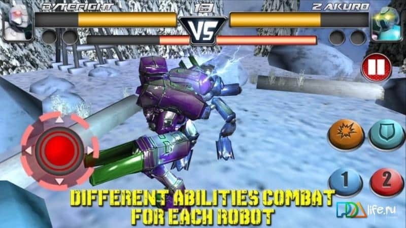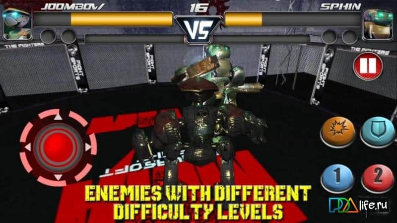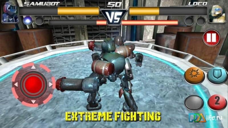 Steel Street Fighter Club Pro - фантастический робофайтинг с трехмерной графикой для Андроид устройств. Действие игры разворачивается в далеком будущем когда все виды контактного спорта среди людей запрещены и на арену выходят боевые роботы, управляемые реальными игроками. Выбрав одного из 16 представителей механизированных войнов отправляйтесь на арену. Игровой процесс выполнен в лучших традициях жанра, участвуя в соревнованиях зарабатывайте очки опыта и денежные средства, на которые у вас будет возможность тренировать бойцов или покупать новых.