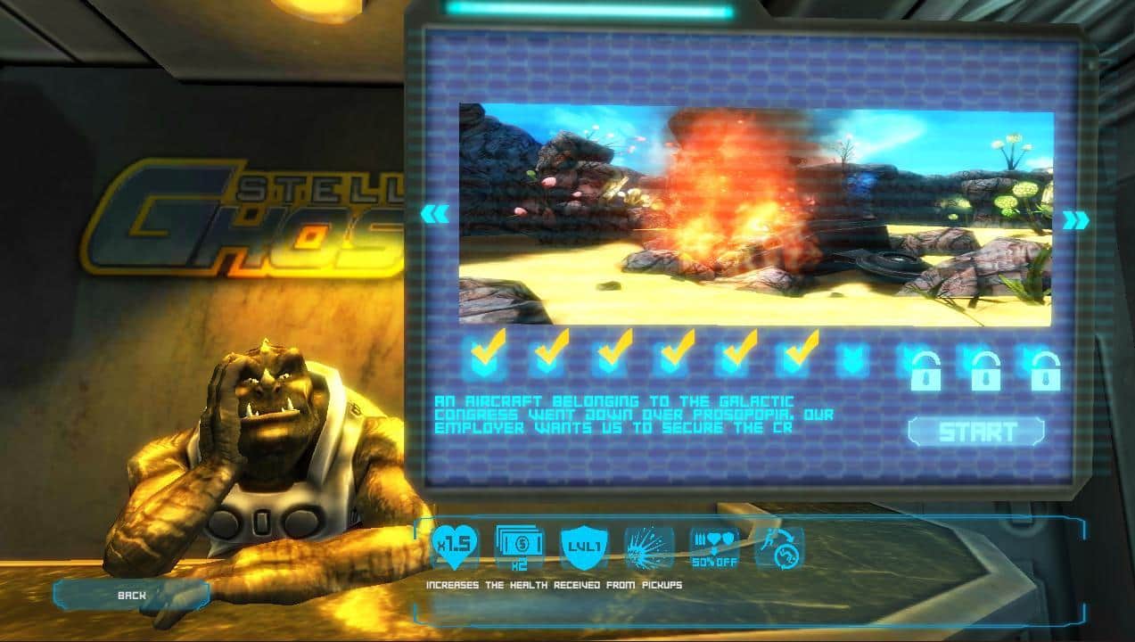STELLAR GHOSTS - Динамический шуттер от третьего лица на андроид. Сюжет игры расскажет нам историю о специальном отряде под названием Звездные Призраки. Это команда наемников-профессионалов, которых наняли межгалактическое правительство для экстренных ситуаций. Вам предстоит выбрать одного из героев данной команды, и вступить в бои на задания, которые посылает вам правительство. Всего в игре шесть персонажей с возможностью улучшать их характеристики.