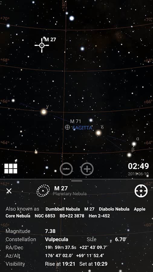 Stellarium Mobile PLUS - Star Map – отличное приложение на андроид, где вы получите астрономическую карту звездного неба нового поколения. В приложении вы найдете реалистичное и точное моделирование ночного неба с огромным количеством онлайн изображений и каталогом небесных тел. Это приложение разработано создателем известного планетария с открытым исходным кодом Stellarium. Версия PLUS была создана для демонстрации и открытого доступа к интерфейсу астрономической карте звёздного неба.