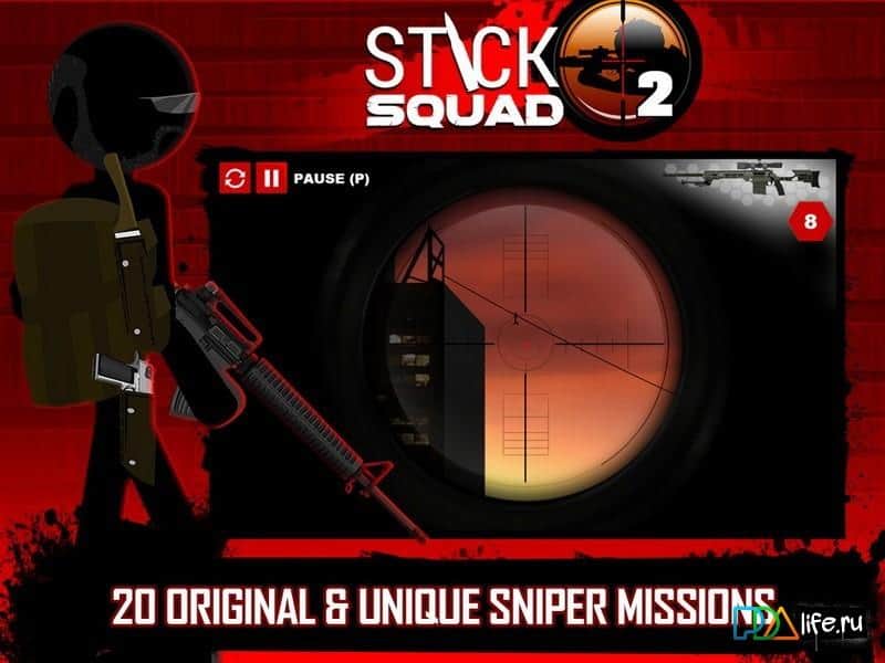 Stick Squad 2 - Shooting Elite – продолжение экшена про снайпера перед которым станут трудно выполнимые миссии. Наш герой избежал ракетного удара по своей базе и теперь его миссией стало, уничтожение всех террористов причастных к этому. Перед нашим героем встали новые задачи и цели, для осуществления которых, ему будут предоставляться новые снайперские винтовки, пистолеты и мощные штурмовые винтовки. В игре добавились новые уровни тир, в котрых вы сможете проверить свои силы и потренироваться перед выступлением на задание. Исследуйте более 20 новых карт и уничтожайте одну цель за другой до полной очистки местности. Обновляйте ваше оружие и калибруйте его в зависимости от силы ветра и дальности цели.