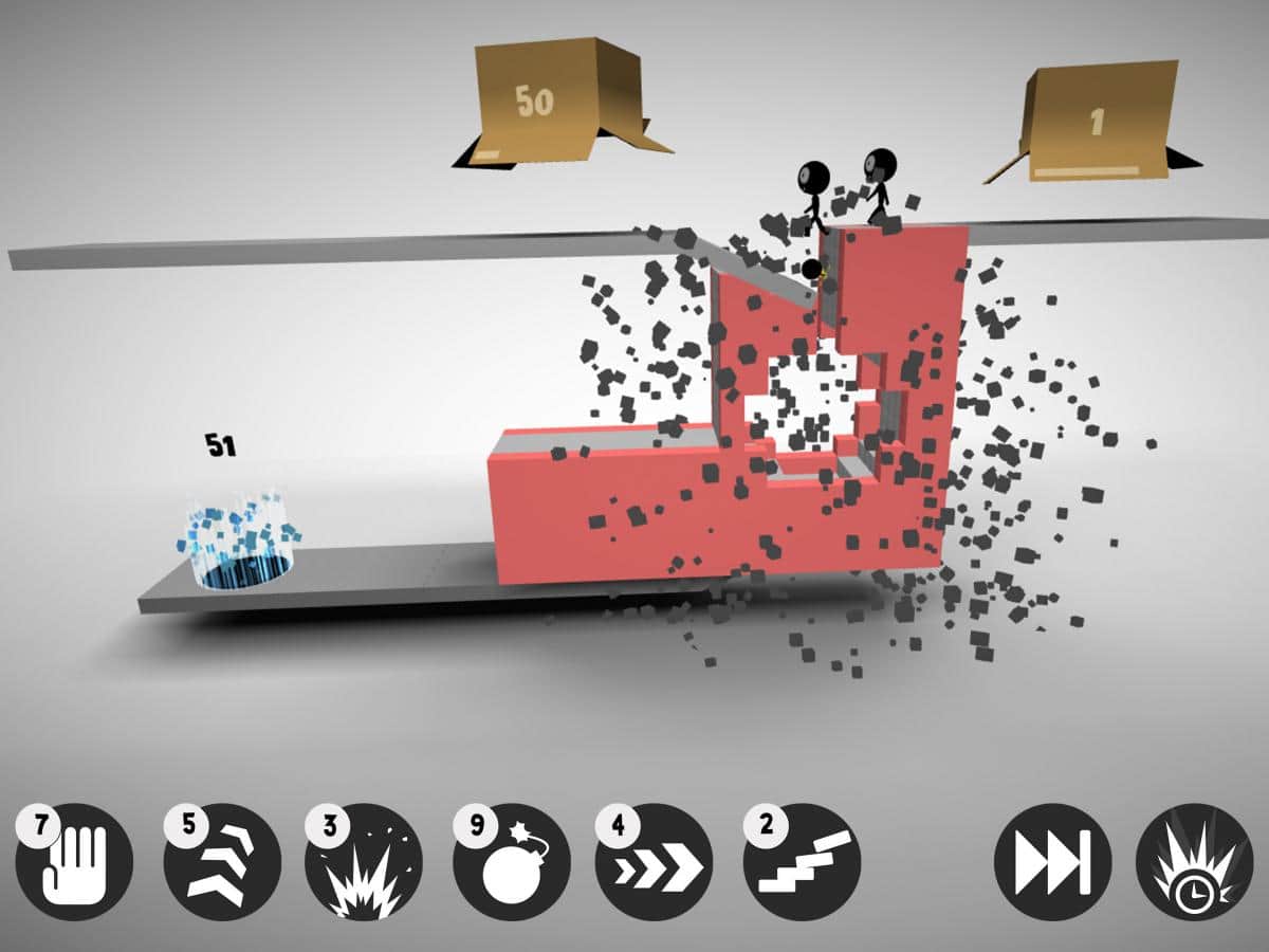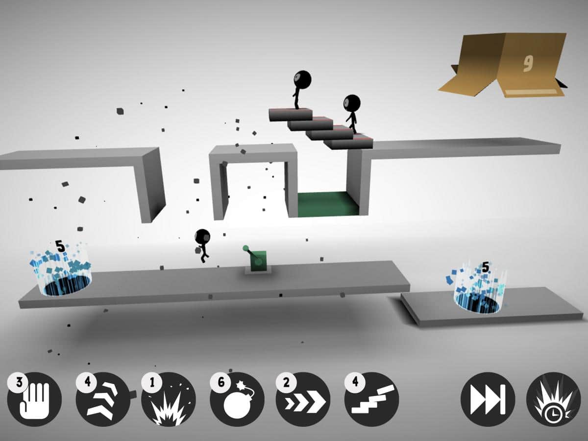 Sticklings – головоломка в которой вы будете управлять группой человечков которые двигаются по опасному пути. В игре вы возьмете под свой контроль группу Стикманов, которых должны довести до финиша. Управляйте группой человечков и заставляйте их совершать прыжки, бегать, кидать бомбы и строить мосты и все для того чтобы дойти до конца уровня. Сложность заключается в том, что до финиша дойдут не все человечки, некоторые из них погибнут ради общей цели. А если вы захотите повеселиться, то уничтожайте их всех по очереди. Игра порадует вас отличной физикой, многочисленными опасными ловушками и преградами. Решайте непростые задачки в этой игре и получайте ценные награды.