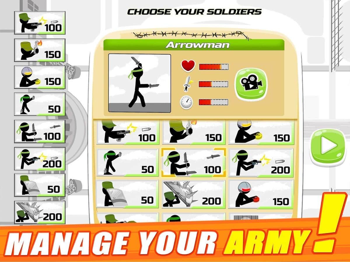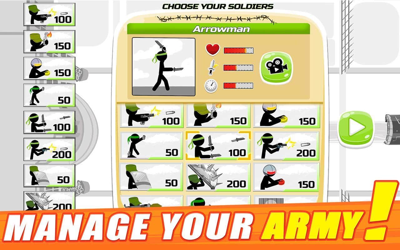 На город наступает вражеская армия, убивающая всех его жителей в Stickman Army: The Defenders, шансов на спасение нет ни у кого. Надежда остается только на игрока, разбирающегося в военных действиях и умеющего сформировать лучший по эффективности отряд. Правильная группа солдат может положить громадное количество противников и остаться в живых, спасая сотни мирных граждан. Изучи стратегии ведения войны и каждого солдата, собери лучший отряд и выступай на защиту города от агрессивных и кровожадных врагов!