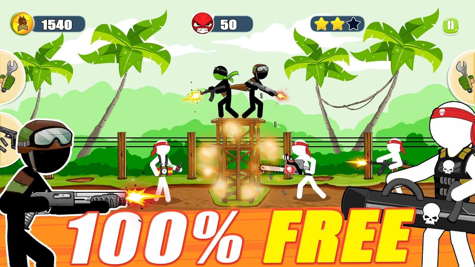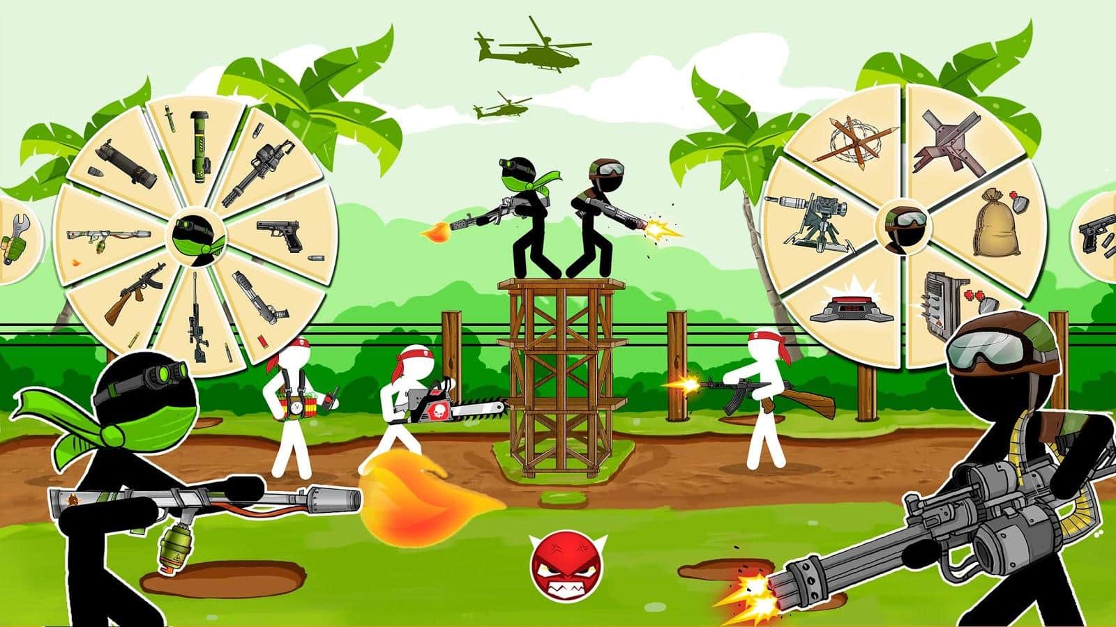 Stickman Army : The Resistance - Увлекательные битвы где нужно защитить башню. Вы отважный солдат, который будет до последнего защищать свою базу! По сути игра очень простая, и все что вам нужно это стрелять по вражеским стикменам, которые будут идти одновременно с двух сторон. В добавок к этому, вы сможете изменять свое оружие, и с каждым новым уровнем оно будет становиться все мощнее. Однако не одни вы можете менять оружие, враги так же станут сильнее и проворнее.