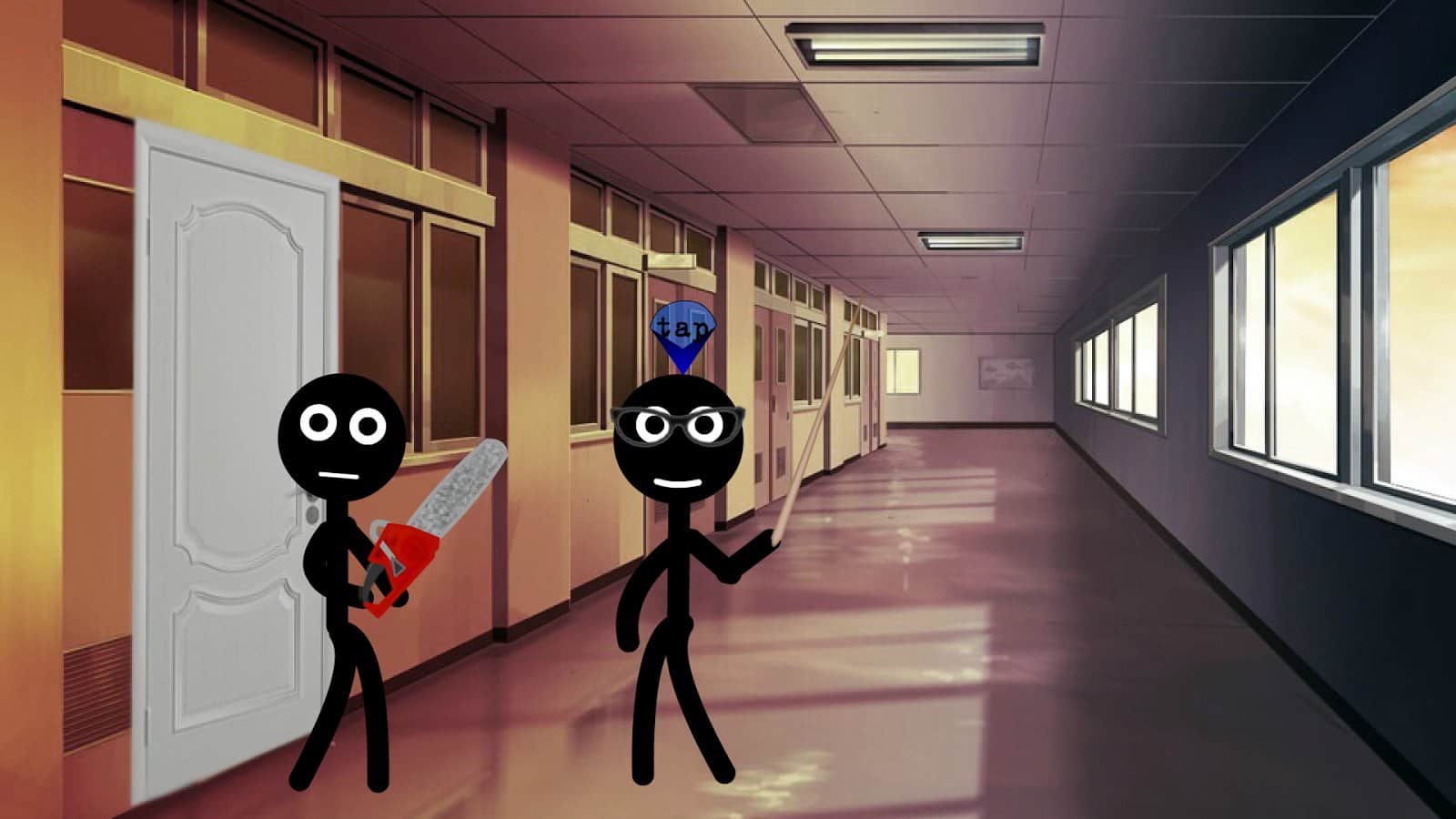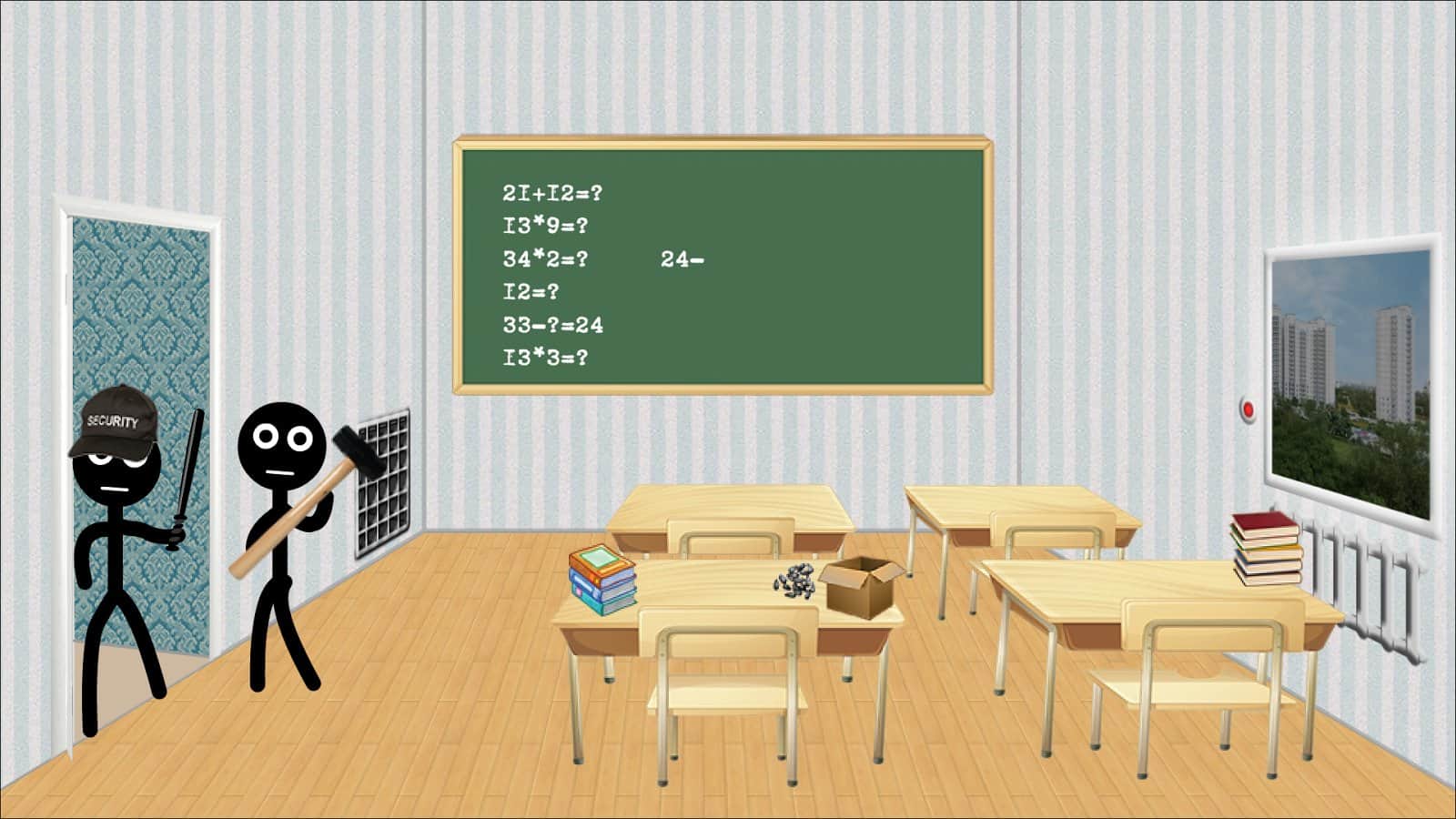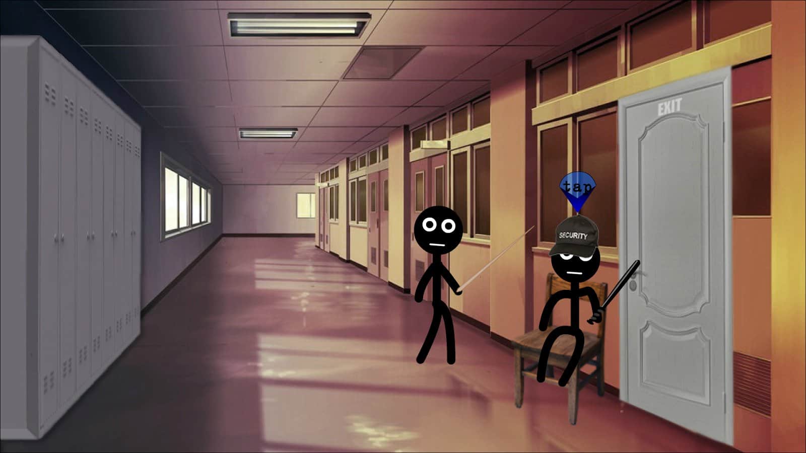 Stickman college – игра на андроид, где вы будете помогать Стикмену выбраться из колледжа. В этой игре вашей задачей будет используя различные предметы попробовать покинуть стены колледжа и обхитрить бдительную охрану. Применяйте в действии различные предметы, находящиеся в картонной коробке и выберитесь с помощью них на свободу. Перемещайтесь по различным кабинетам и коридорам учреждения и применяйте бомбы, пилы, веревки и телефоны. Опасайтесь врагов, которые будут охотиться за вашим снаряжением, а также не забывайте что на улице вас будут поджидать многочисленные опасности.