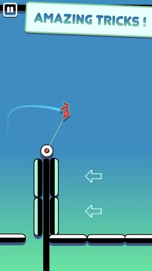 Stickman Hook – увлекательная аркада на андроид, где вы будете управлять стикменом. В этой игре вшей главной задачей будет пройти все испытания и при этом совершить невероятные трюки и перевороты. Касайтесь экрана в нужный момент для того чтобы стикмен зацепился за веревку как паук и кружился на ней проделывая всевозможные трюки. Совершайте прыжки, разрушая стены и подпрыгивайте на батуте. Выполняйте акробатические трюки и докажите всем что вы лучший игрок в этой игре. Получайте по три звезды на каждом уровне и воспроизводите уже выполненные трюки.