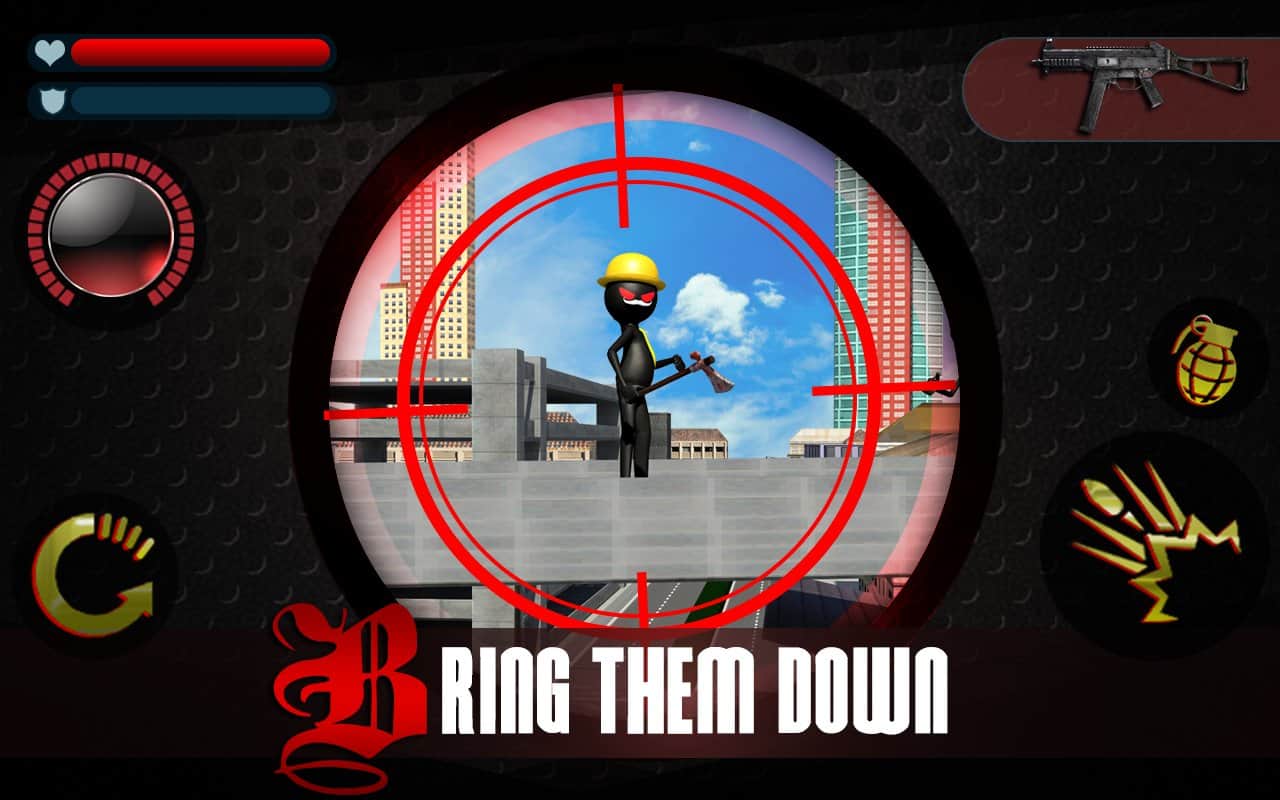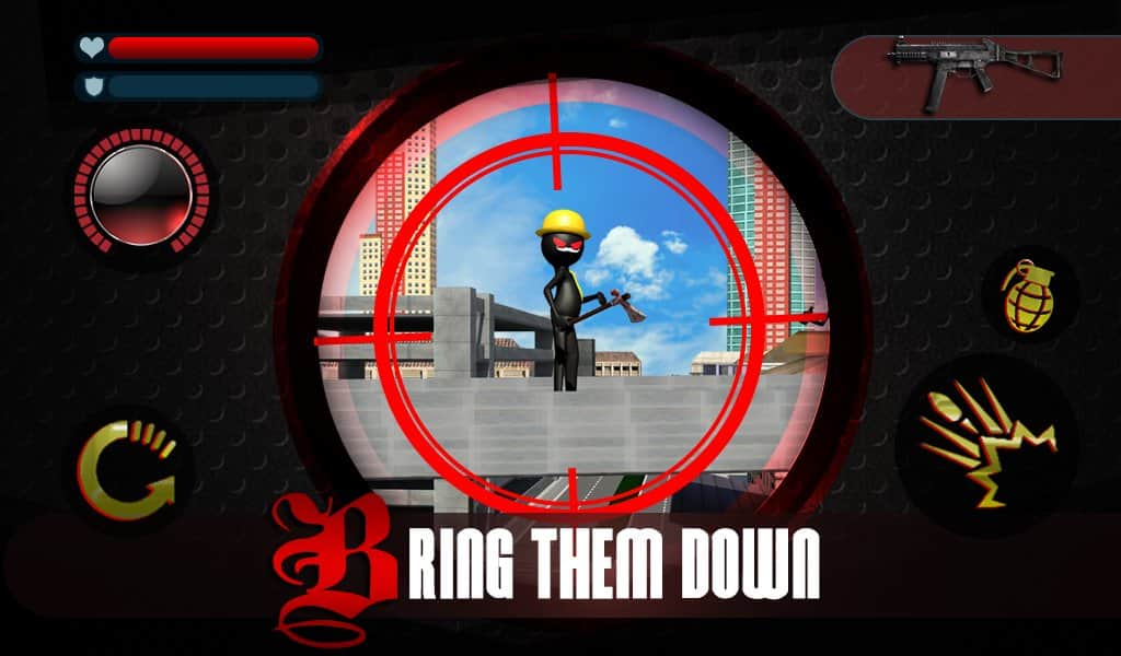 Stickman Shooter 3D - Стикмен набрал уже невиданной популярности в мобильных игр. Он выполнял уже наверно все что приходило в голову разработчикам. Теперь на очереди шуттер от первого лица. Кроме того, эта игра получила трехмерную графику с черным оформлением стикменов. В вашем арсенале будет винтовка с оптическим прицелом для успешного ведения боя.