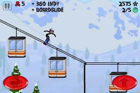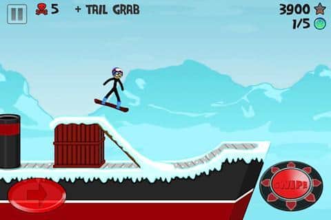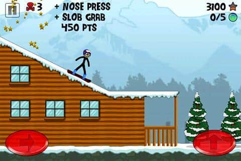 Stickman Snowboarder - Стикмен отправляется в новое приключение. В этой андроид игре он будет кататься на сноуборде. Сюжет игры начинается с свежего зимнего утра, когда наш герой выходит на улицу. За неприличное действие за ним начинает гнаться снежный человек. И стикмен бросается на утек от него. По пути он делает красивые трюки и финты, запрыгивая на разнообразные предметы, и даже животных.