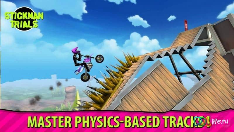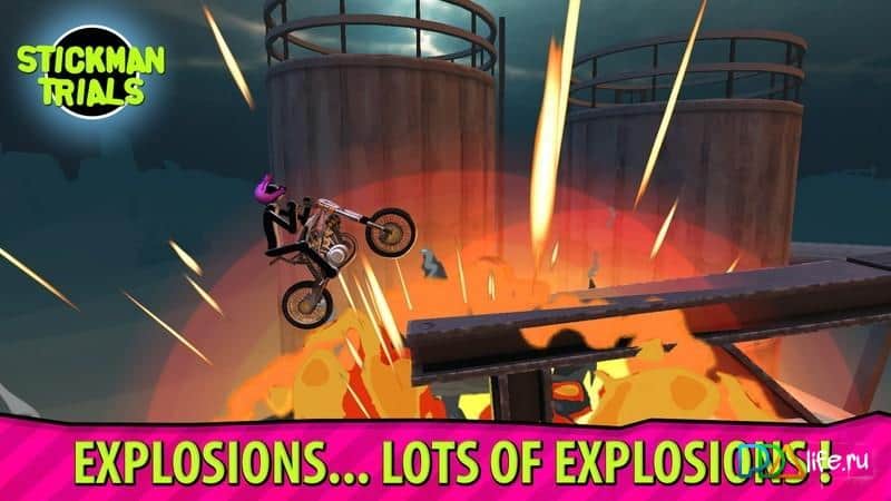 Stickman Trials – качественно выполненные гонки на байках и велосипедах по различной пересечённой местности. На трассах расположено множество опасных препятствий, которые необходимо преодолевать с особой осторожностью. Не всегда удаётся проехать трассу как положено с первого раза, после нескольких тренировок у вас обязательно это получится. В игре большой выбор двух колесной техники, начиная с велосипедов заканчивая мощными спортивными байками вытворяющие невероятные трюки.. В игре есть многопользовательский режим, ставьте рекорды и бейте старые. Становитесь на пьедестал в таблице лидеров.