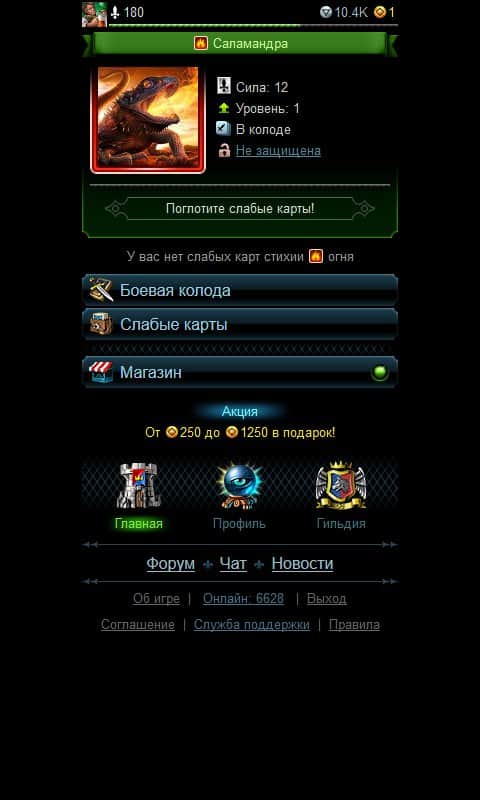 Стихии - Онлайн Битва – карточная игра на андроид, где вы будете вступать в сражения с другими игроками. В этой игре для начала вам будут даваться стандартные карты, которые поделены на четыре стихии: огонь, вода, земля и воздух. Каждая карта в этой игре уникальная и имеет свой набор ударов и атак. Бросайте вызов игрокам со всего мира и сражайтесь на арене, нанося разрушительные удары картами. По ходу игру повышайте уровень своих карт и приобретайте новые. Получайте игровые деньги, проходя увлекательные миссии и выполняя различные задания. Получайте бесценное здоровье, которое будут определять силу вашей колоды.